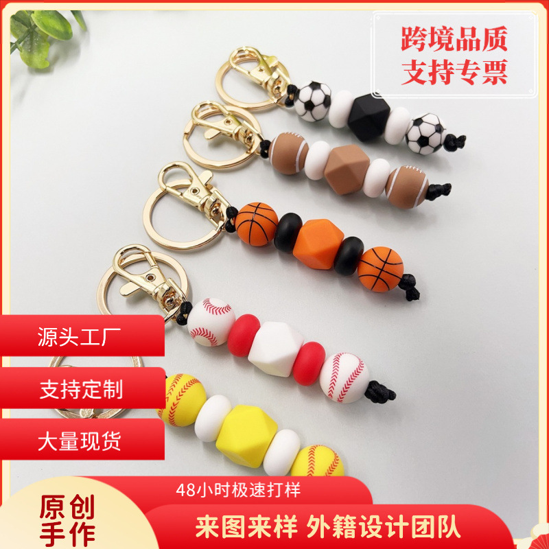 国境を越えたスポーツ風球技サッカーバスケットボールラグビーシリコンビーズキーホルダーリュックサックストラップアクセサリー