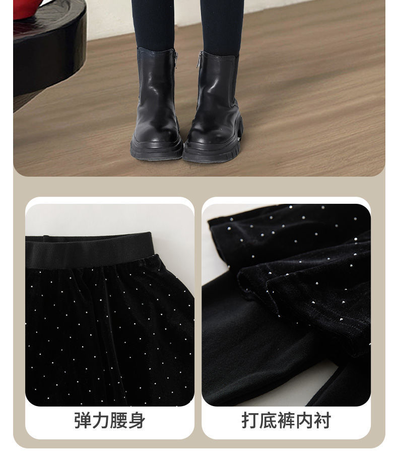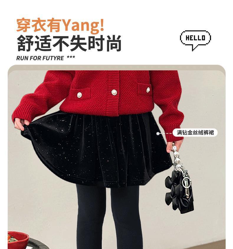 女の子用ベルベット風フェイクツーピーススカートパンツ、裏起毛・厚手、アウターとしても着用可能、2025秋冬新作、ベビーカジュアルロングパンツ、トレンド