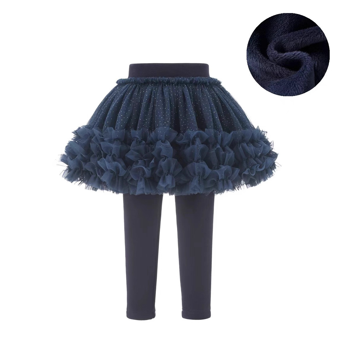 女の子用秋冬レギンス、フェイクツーピーススカートパンツ、裏起毛厚手秋服パンツ、子供用外履きスカートパンツ、プリンセス風