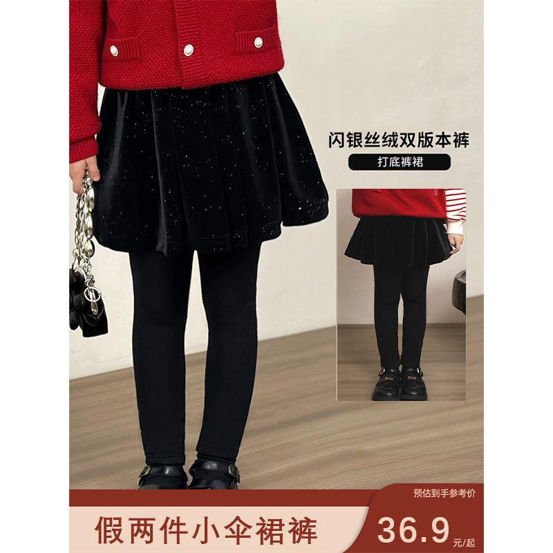 女童加绒打底裤冬装新款儿童假两件裙裤外穿中大童一体绒加厚裤裙