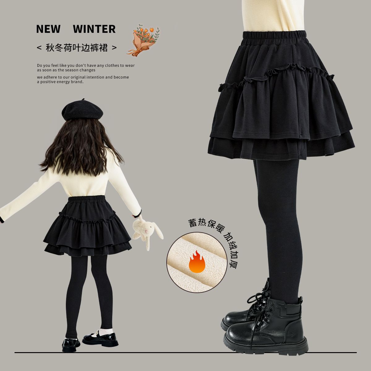 女童裤裙加绒冬装新款儿童假两件裙裤外穿中大童一体绒加厚打底裤