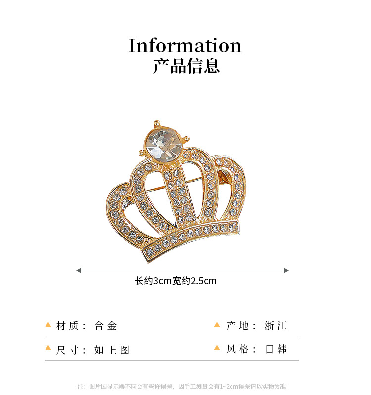 かわいい王冠ジルコンブローチ、シンプルでエレガントなスーツジャケットピン、クリエイティブで個性的なコサージュアクセサリー、エキゾチックスタイル