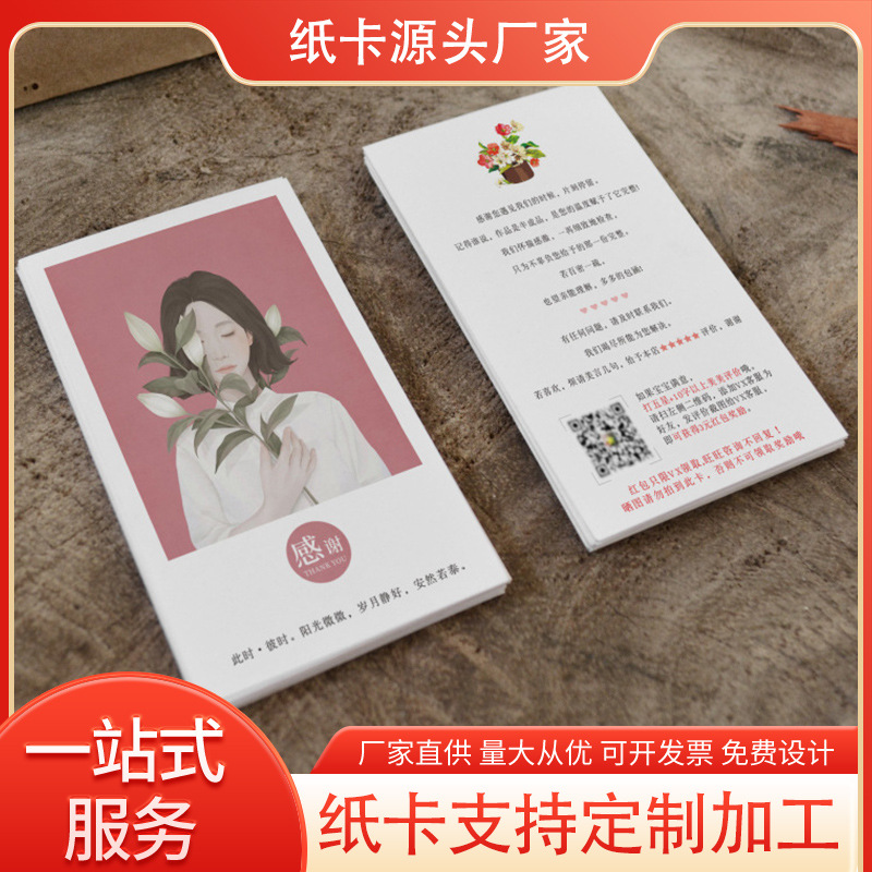 銅版紙特殊紙の両面カラー印刷によるカスタマイズされたサンキューカードの製造業者、卸売カスタマイズ