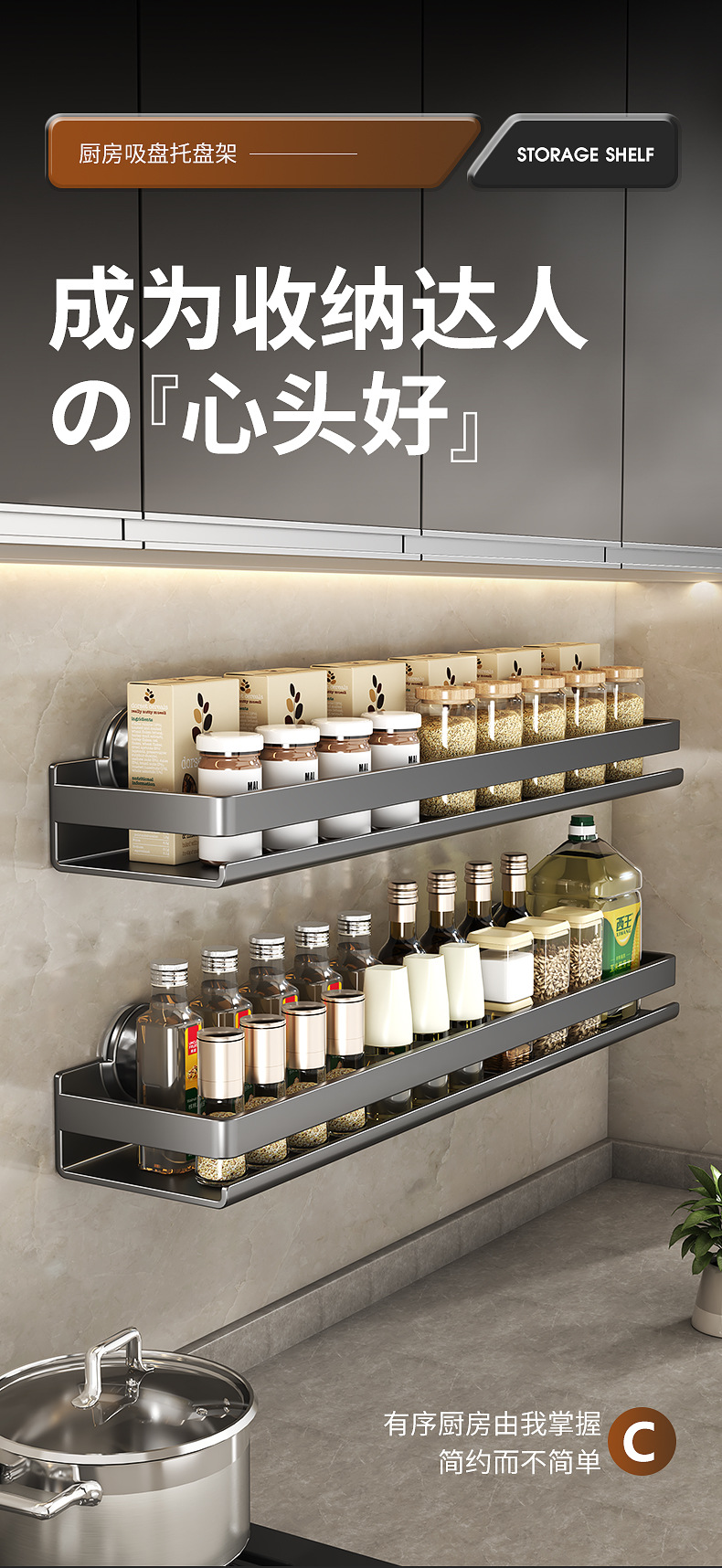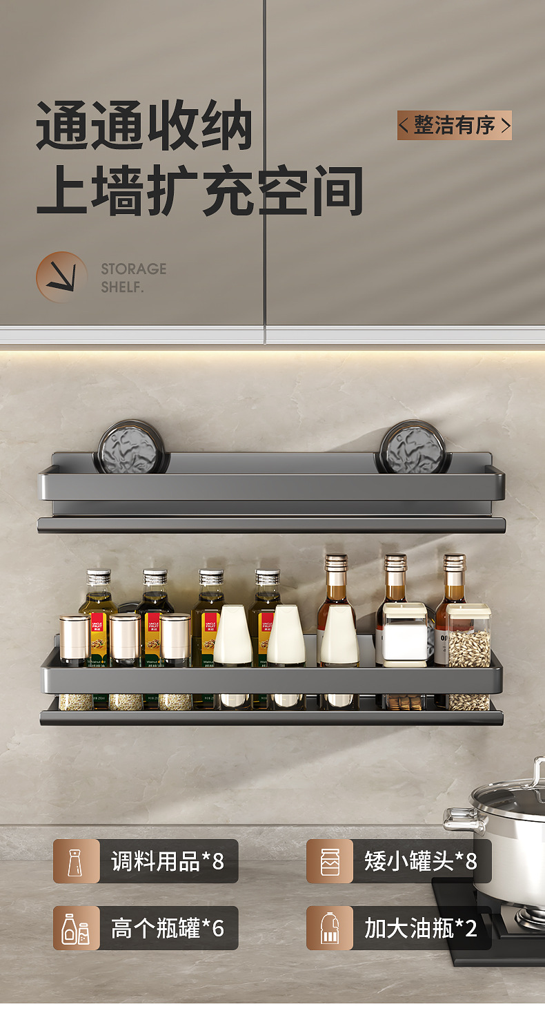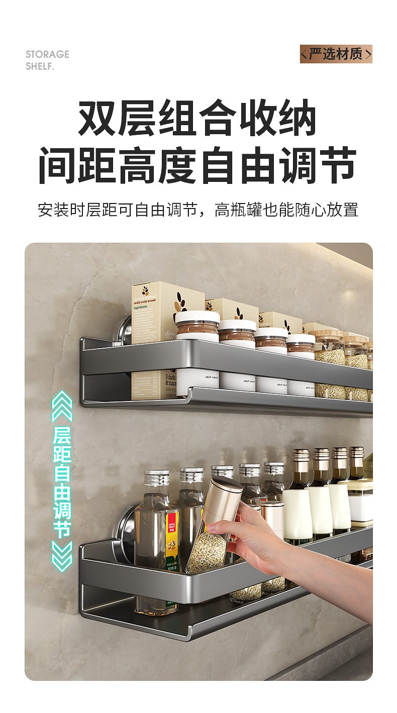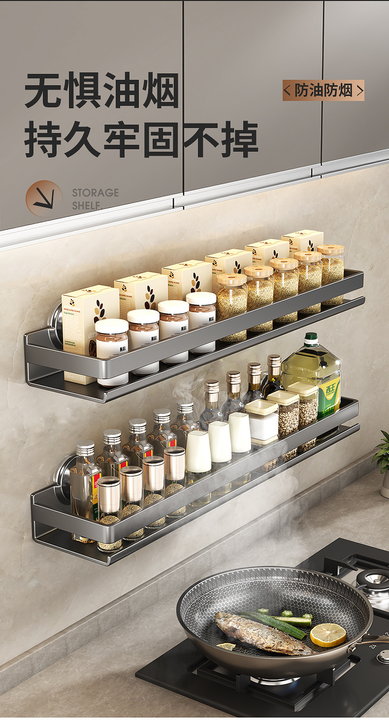 キッチン吸盤棚穴なし調味料棚家庭用壁掛け壁調味料缶収納棚