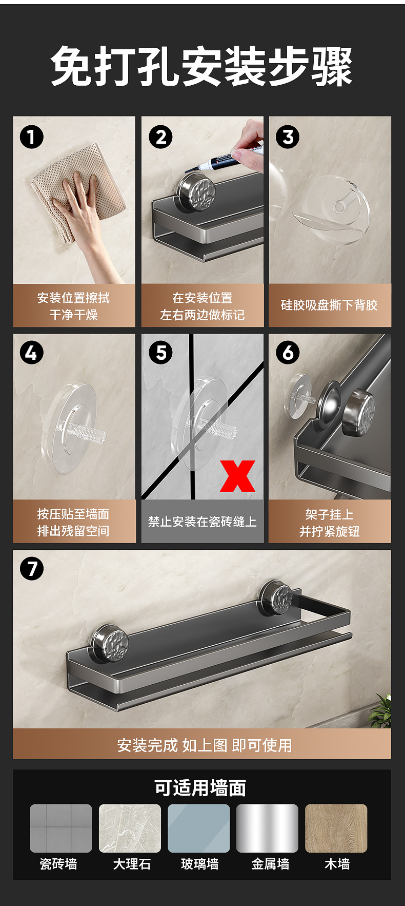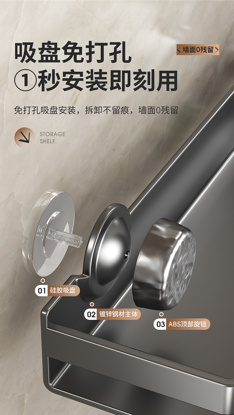 穴なし壁掛け式創意多機能吸盤棚厨房調味料収納トイレ用ベランダ棚