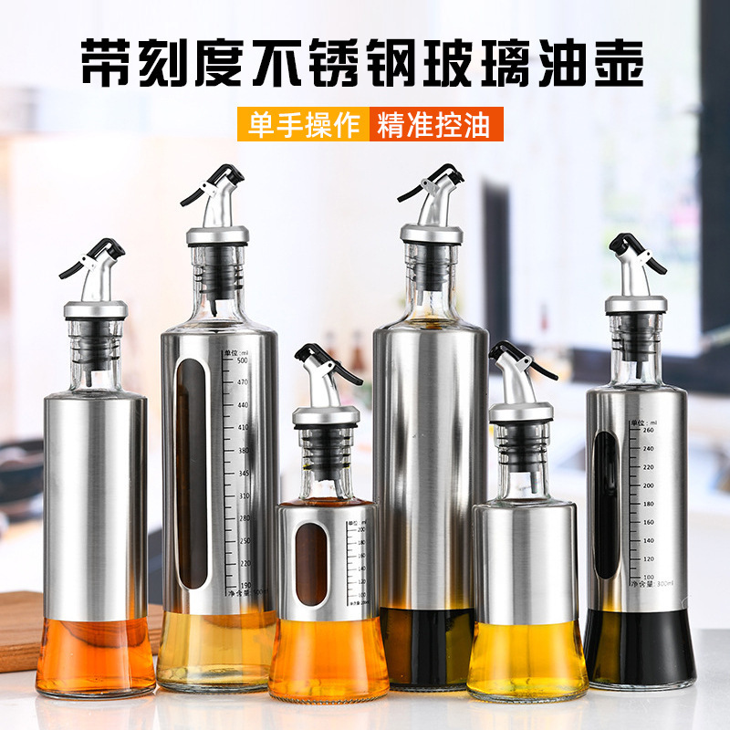 刻度可视油壶厨房用品不锈钢油壶玻璃油瓶家用酱油醋瓶调料瓶