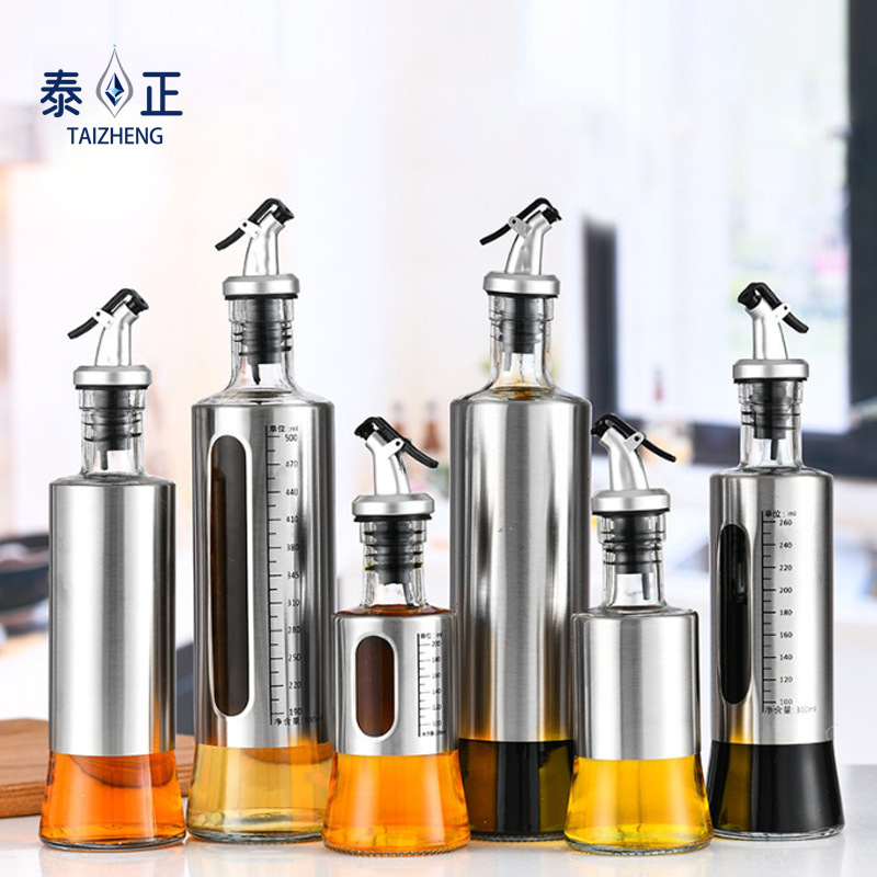 プレス式ステンレスガラスオイルボトルキッチン調味料ボトル醤油酢ワイン詰め替えメーカー既製オイルボトル卸売