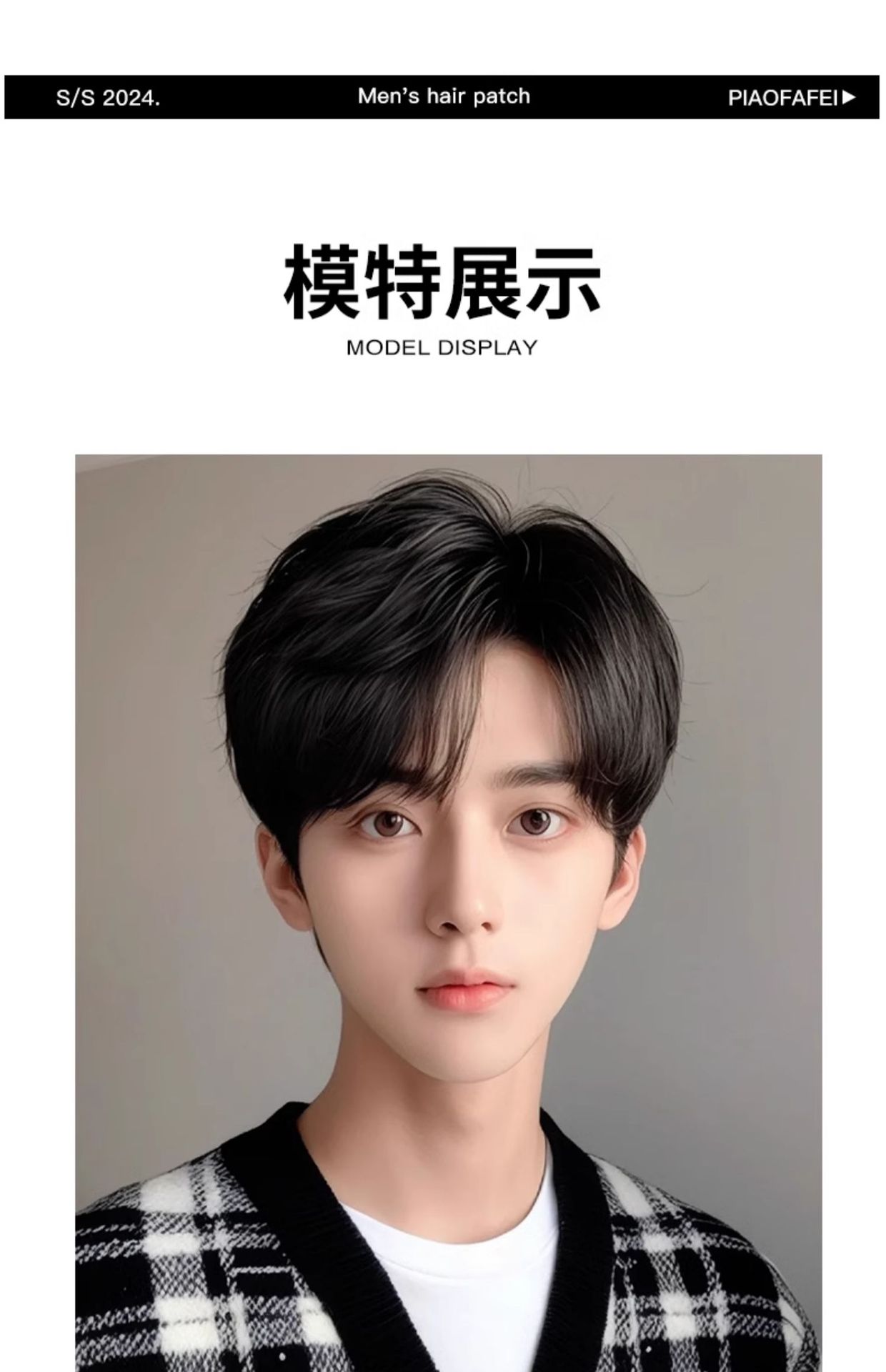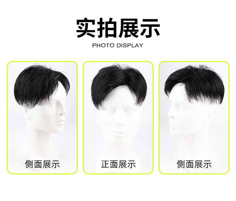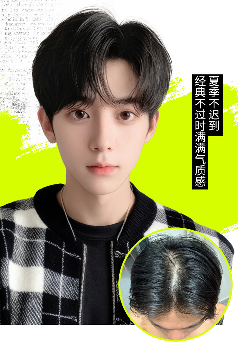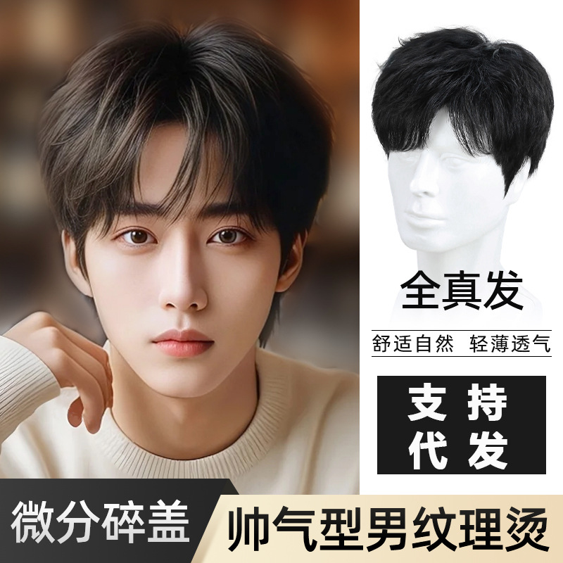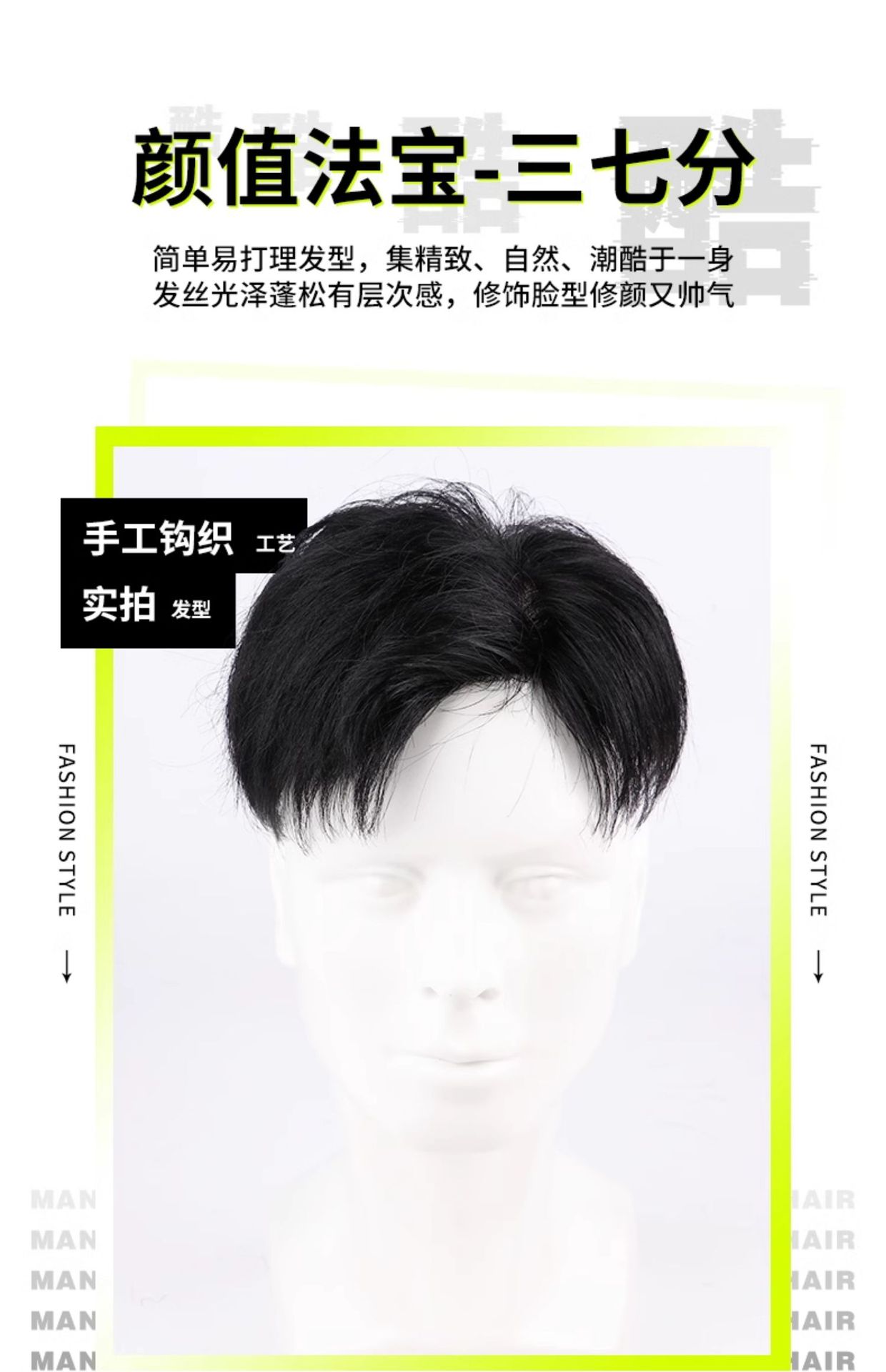 男士假发男生微分碎盖短发帅气自然真发头顶男款发际线发型前额