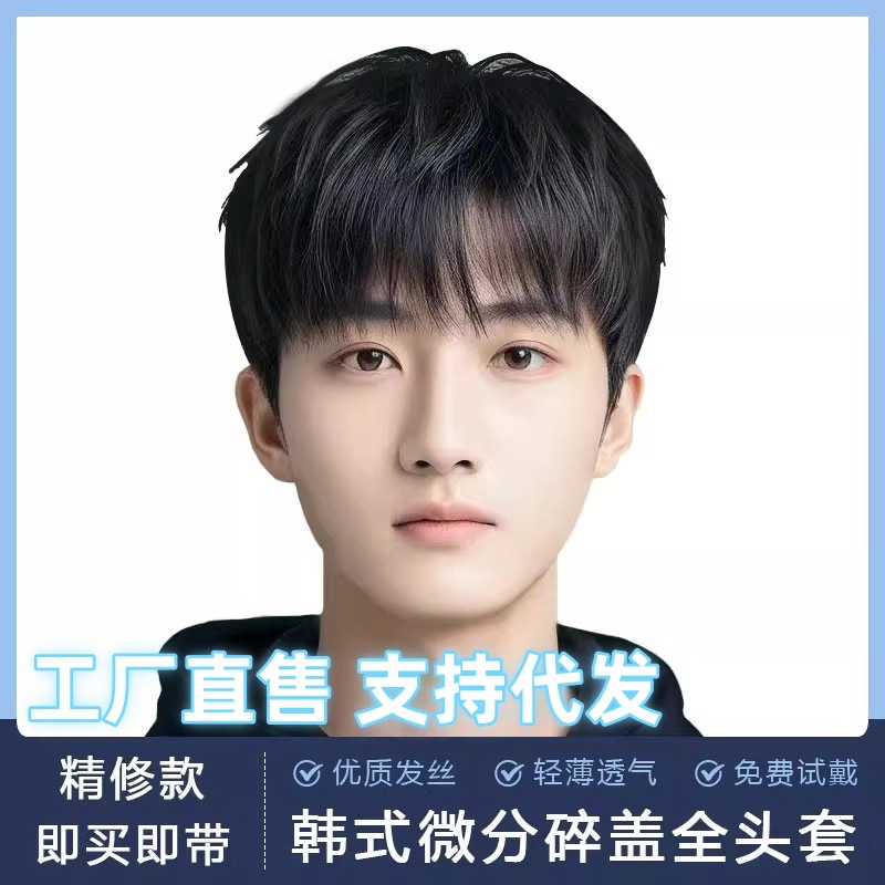 假发男生全真发微分碎盖韩式发套短发隐形无痕增加发量补发全头套