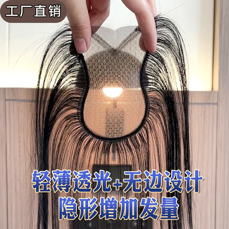 髪のボリュームを増やす、女性用胎児毛前髪ウィッグ、自然な額、本物の髪、目に見えない薄いヘアラインウィッグ