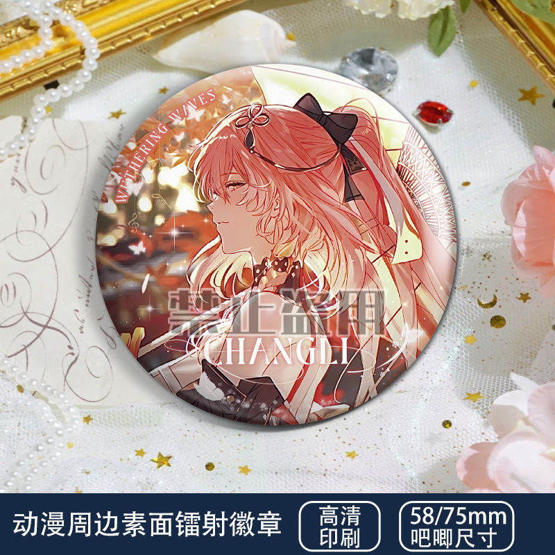 鳴潮レーザーバッジ 長離吟林今汐陵陽バジ同人谷子75ブリキ胸章七彩レーザー