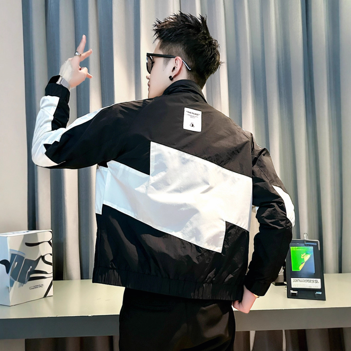 男士立领夹克潮牌痞帅撞色男装上衣褂子2025新款春秋潮流休闲外套