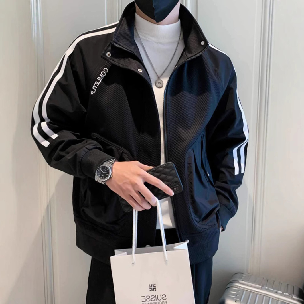 格好いい新型春秋ジャケット男性ジャケット高級感ファッションブランド男性服立襟青少年上着修身金