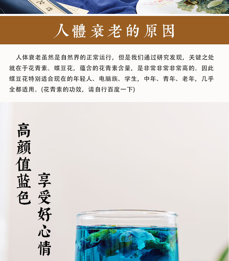 蓝蝴蝶花茶野生级调色干花烘焙白凉粉奶茶用官方旗舰店蝶豆干花