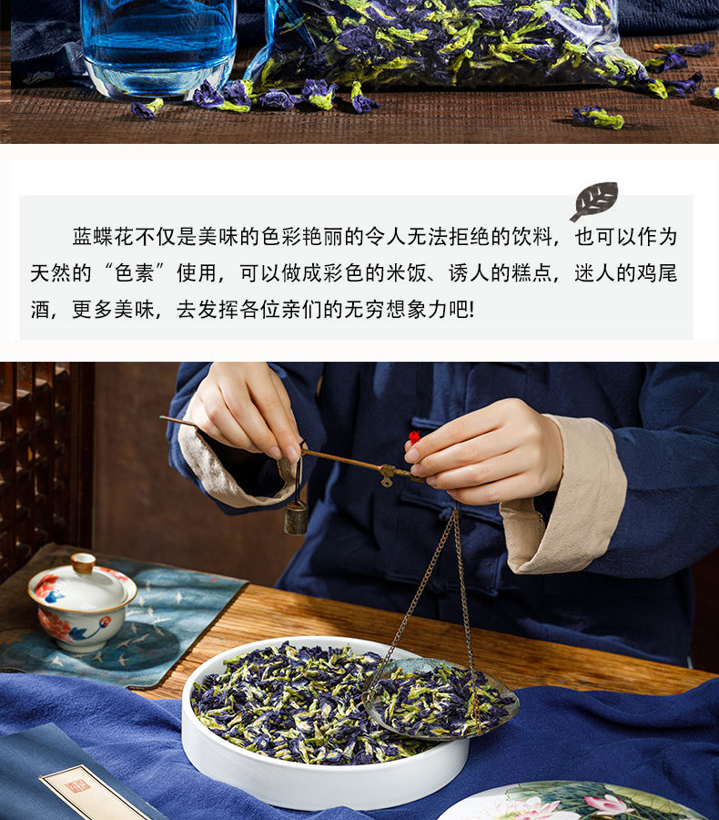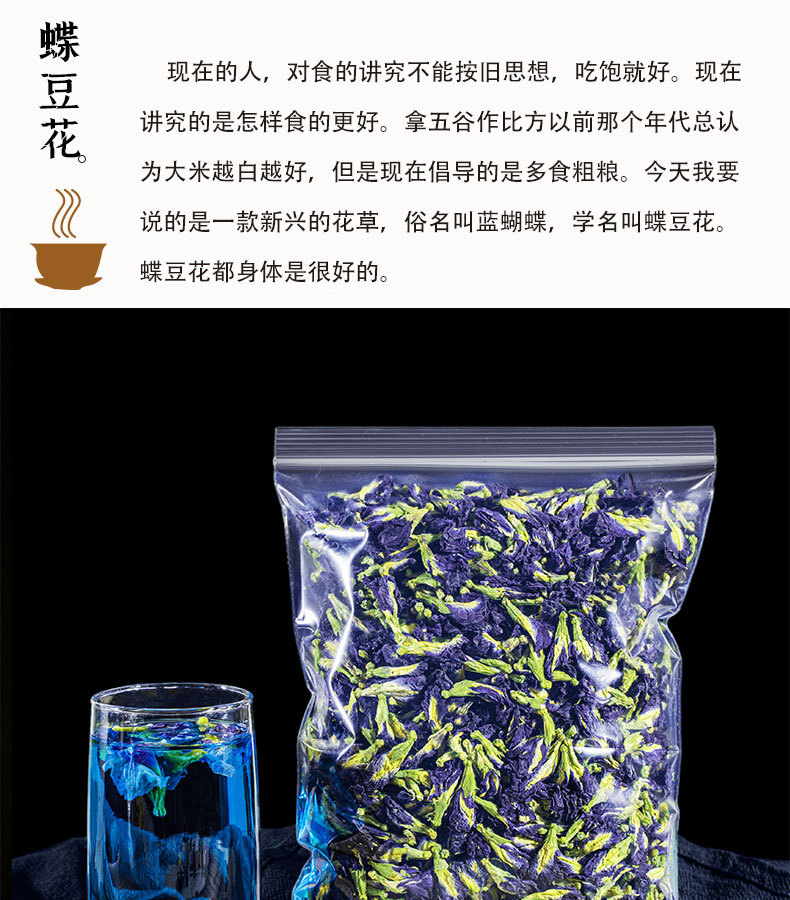 蝶豆花500蓝蝴蝶花茶碟豆花干花调色商用奶茶店糯米饭洛神花批发