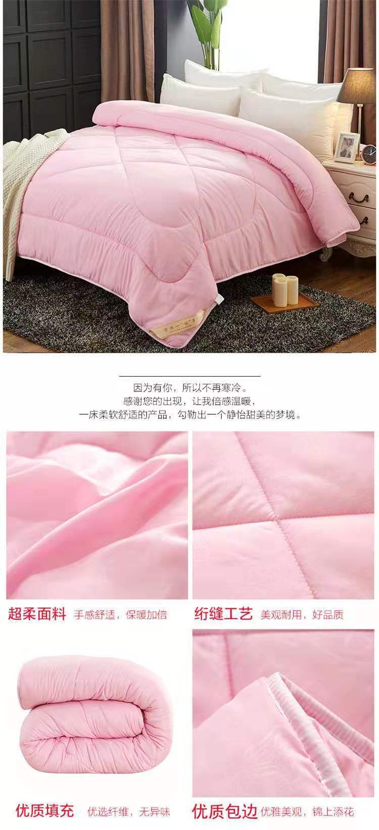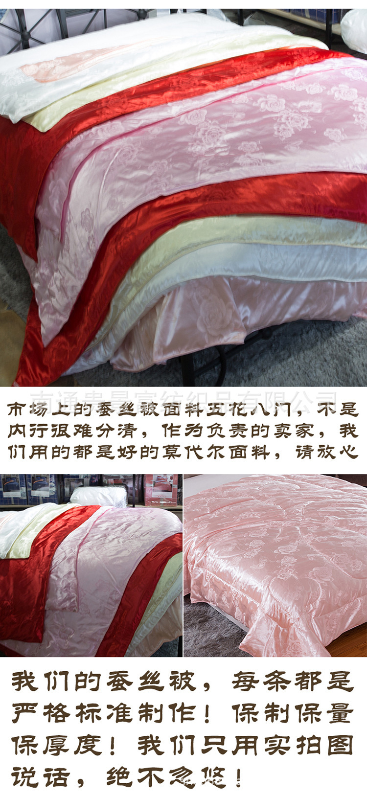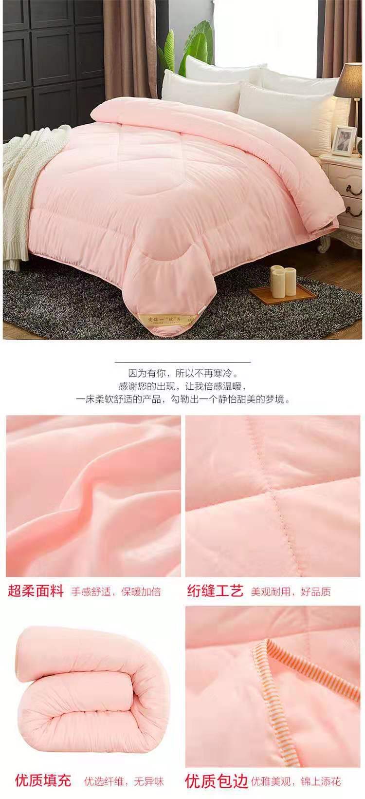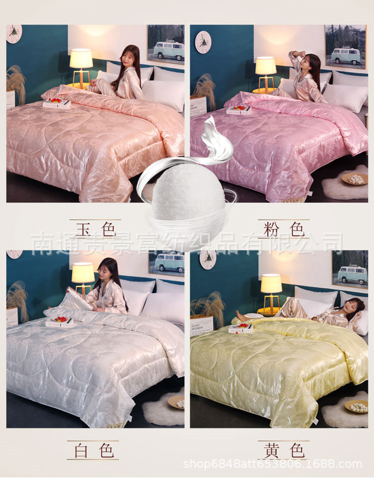 4、本款宝贝面料:磨毛压花面料,填充物:仿蚕丝,蚕丝被。本店产品花型,尺寸较多,适合各个年龄层和消费水平的顾客!