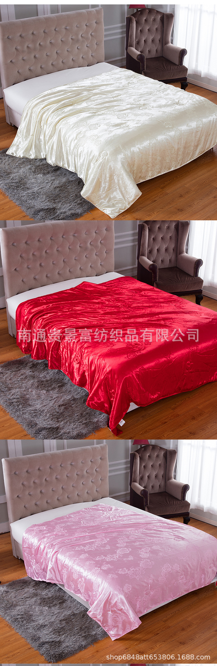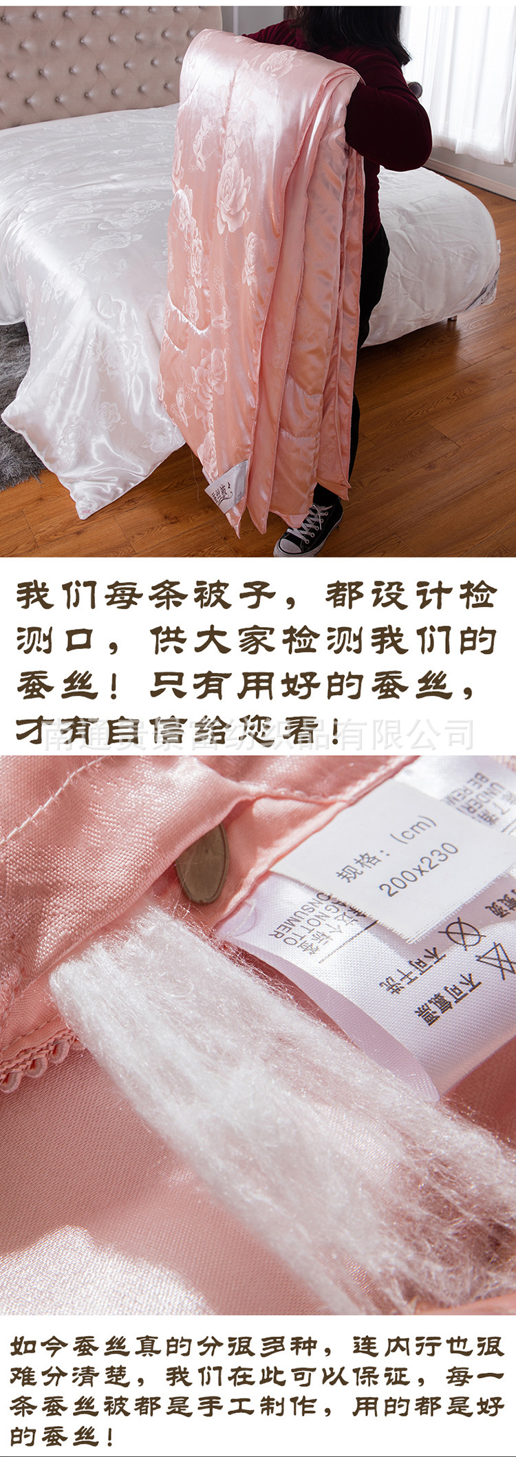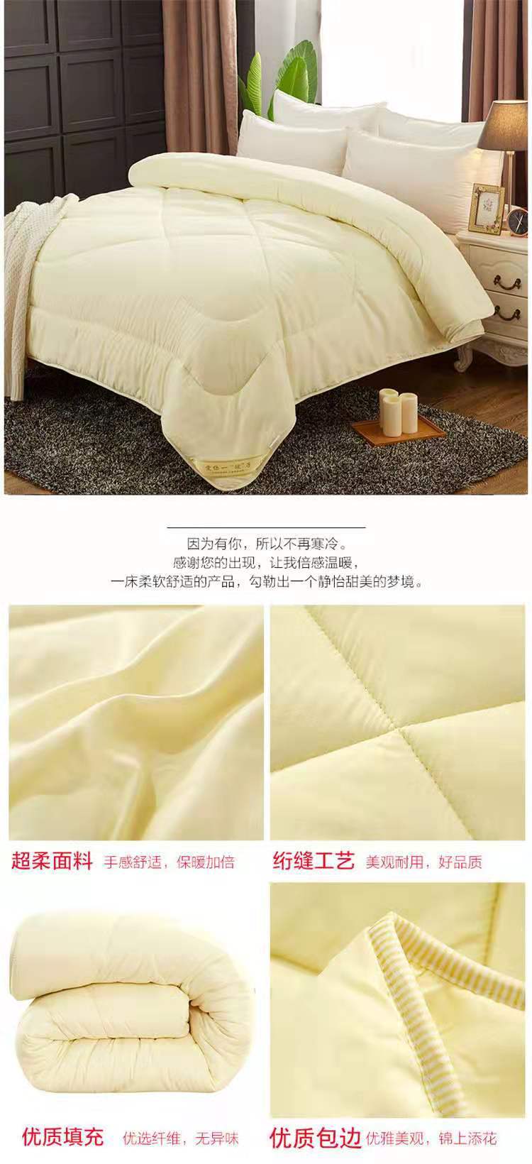 4、本款宝贝面料:磨毛压花面料,填充物:仿蚕丝,蚕丝被。本店产品花型,尺寸较多,适合各个年龄层和消费水平的顾客!