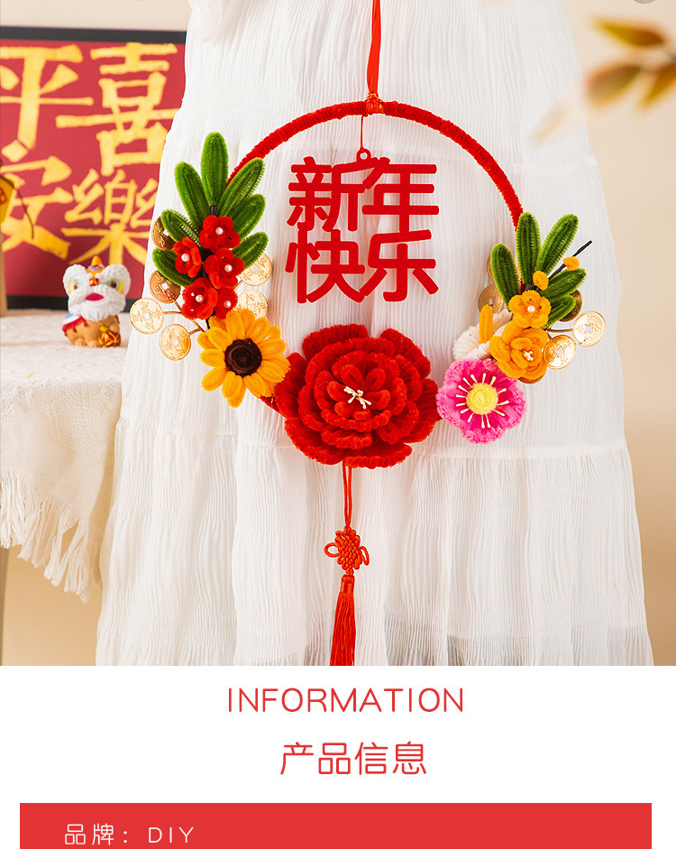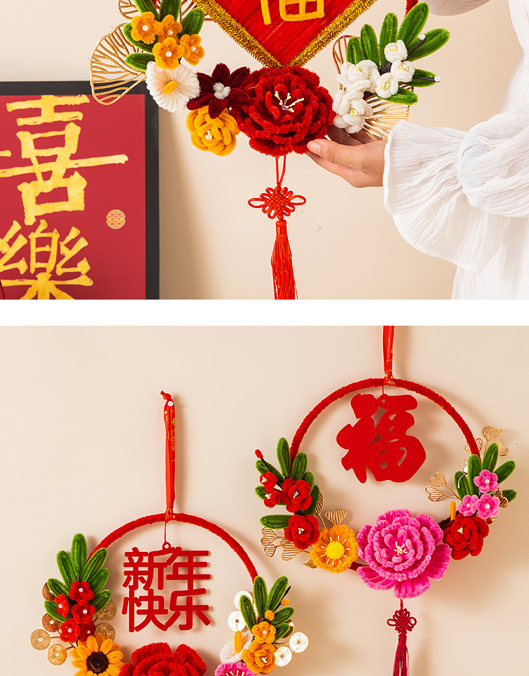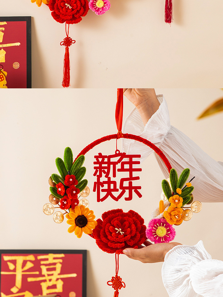 元旦新年装飾品花輪ストラップ蛇年旧正月手作りdiyねじり棒花輪材料年越しペンダント