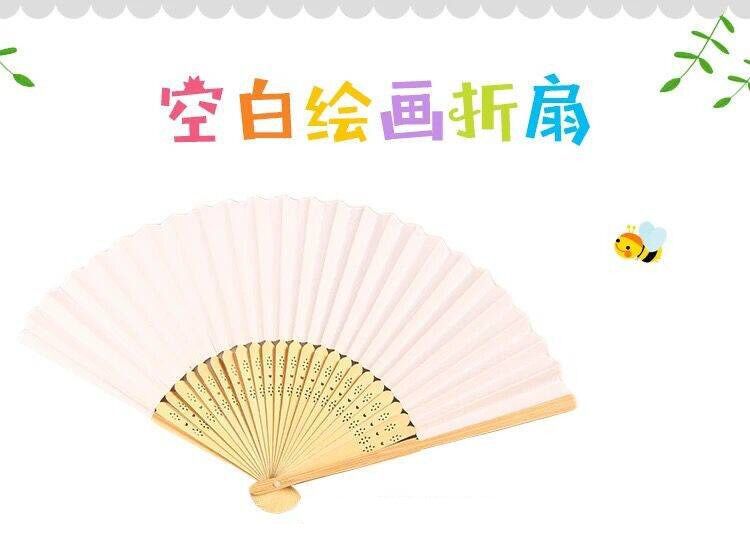 7寸白紙扇空白折り扇カラー子供絵画扇子diy手作り塗り絵素面