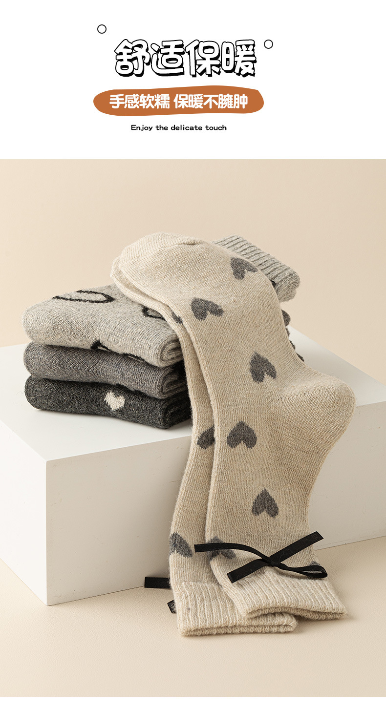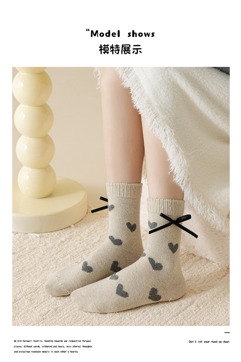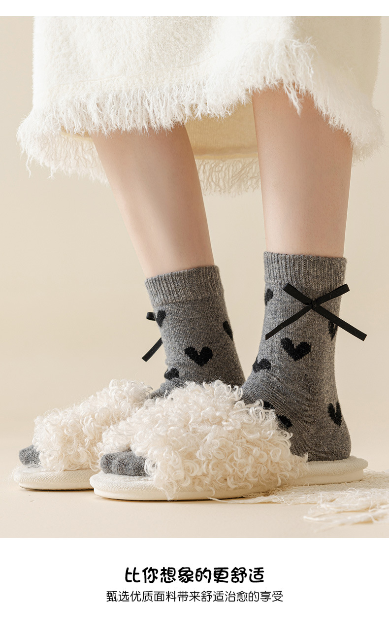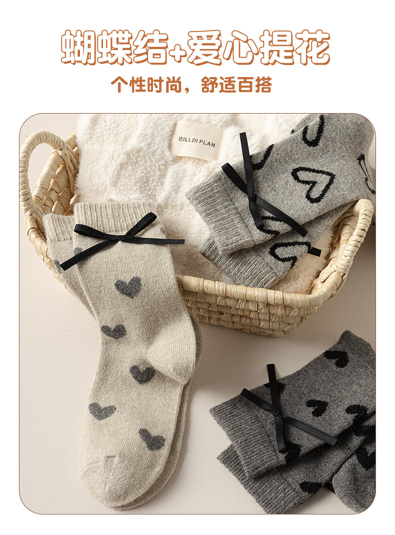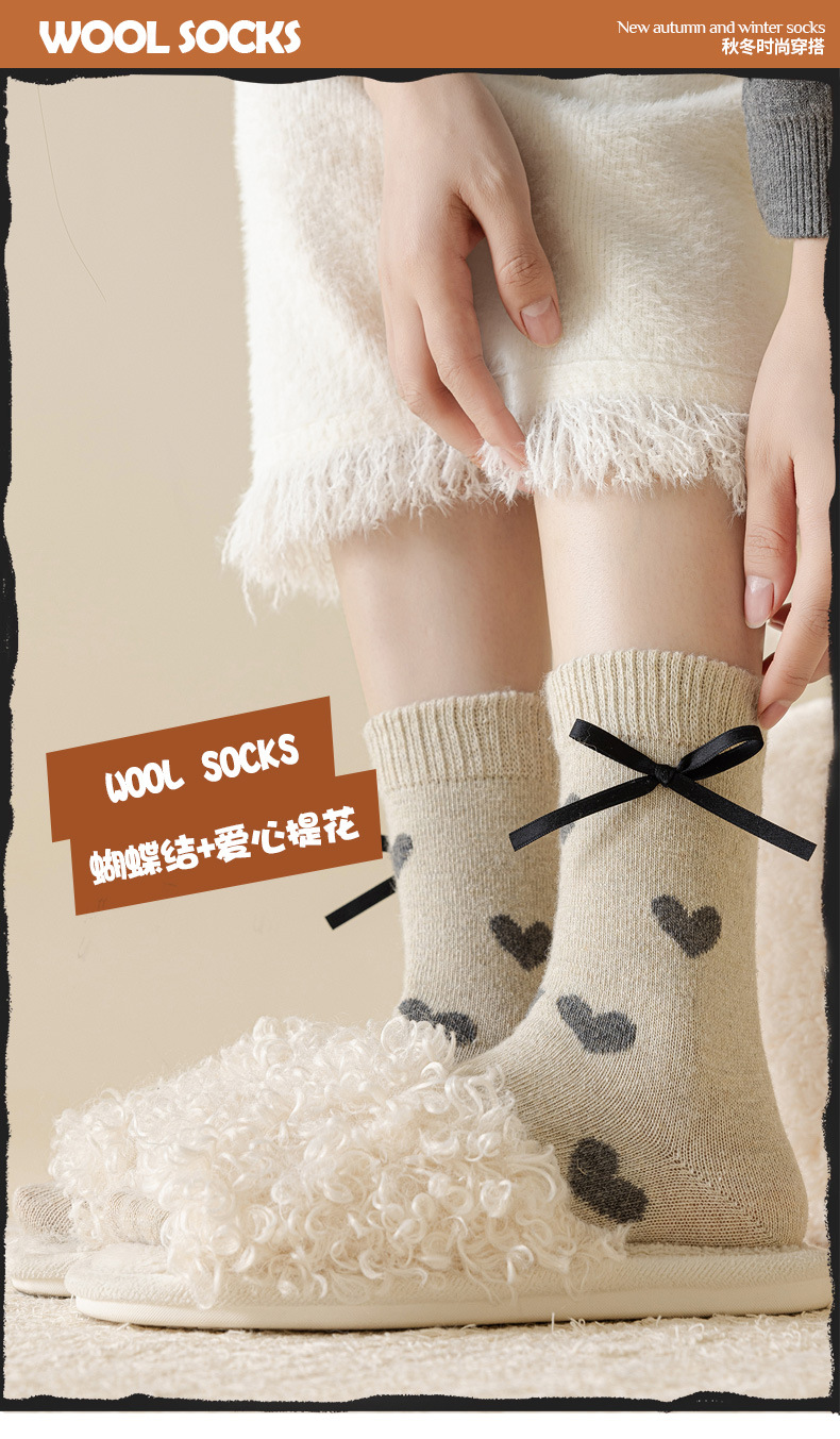 ウールの愛の蝶結びの靴下の女性の中筒の靴下の秋冬の金は厚いです。