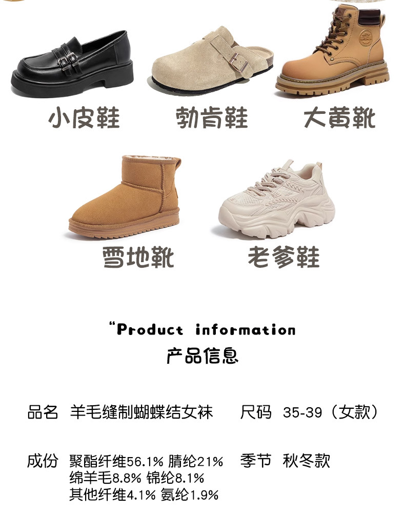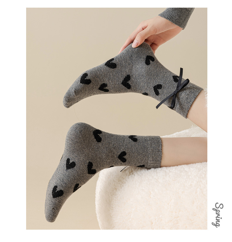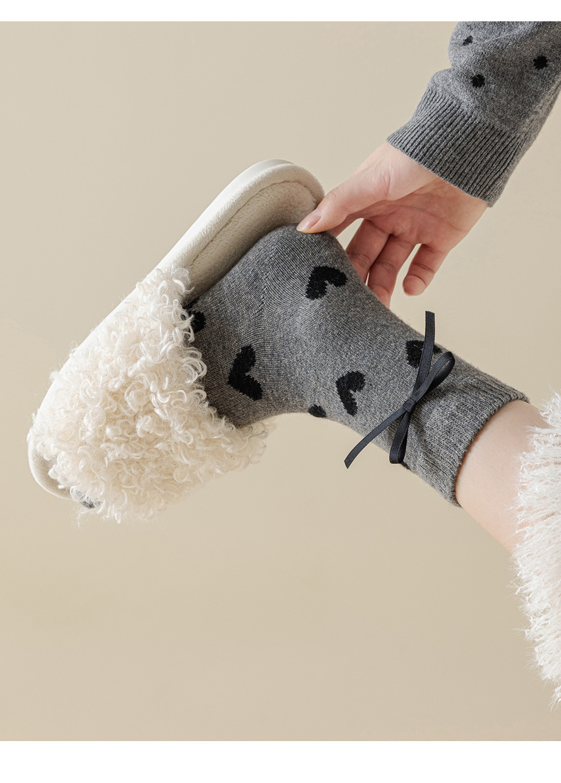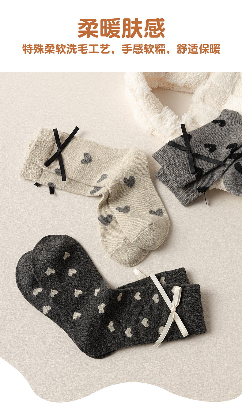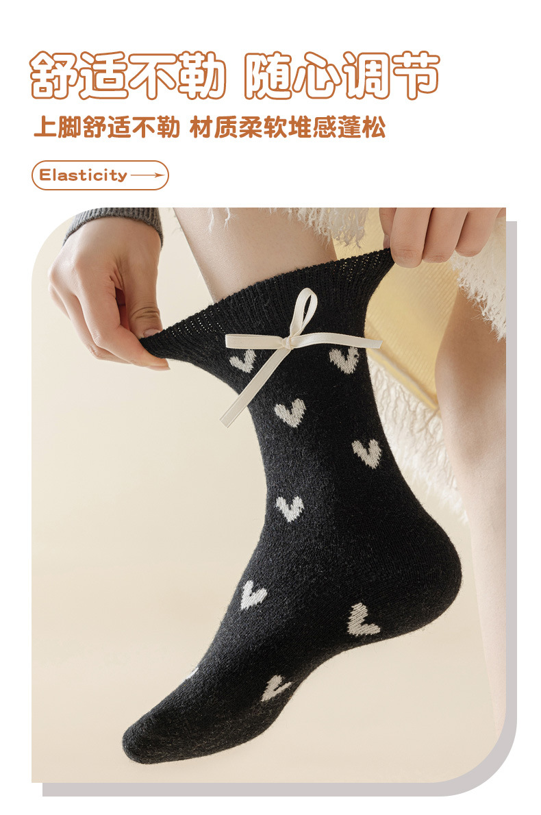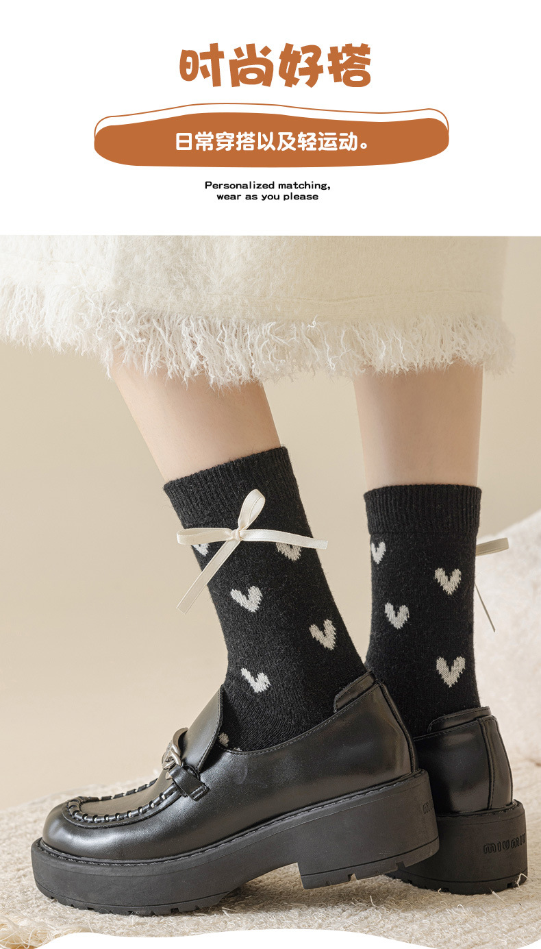 ウールの愛の蝶結びの靴下の女性の中筒の靴下の秋冬の金は厚いです。