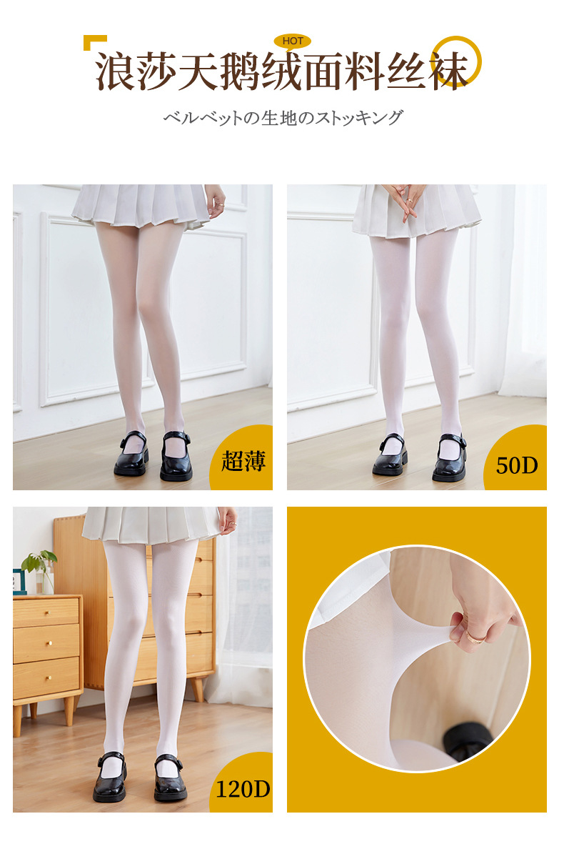 日系白丝洛丽塔天鹅绒80d白色连裤丝袜女打底袜薄款lolita黑丝Sy