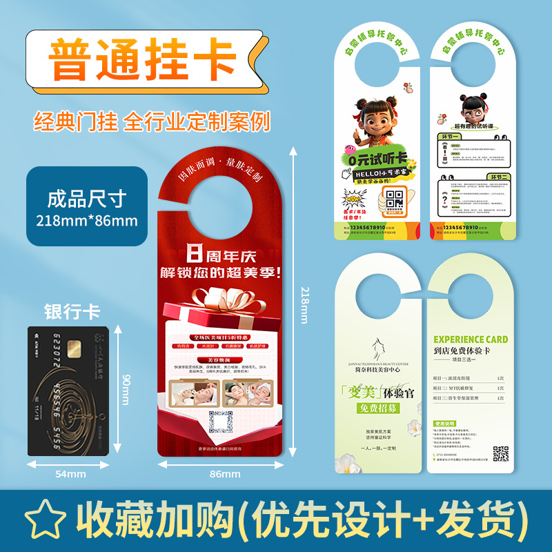 厂家定制酒店民宿门挂卡广告宣传车门把手挂牌美容院异形门挂纸卡
