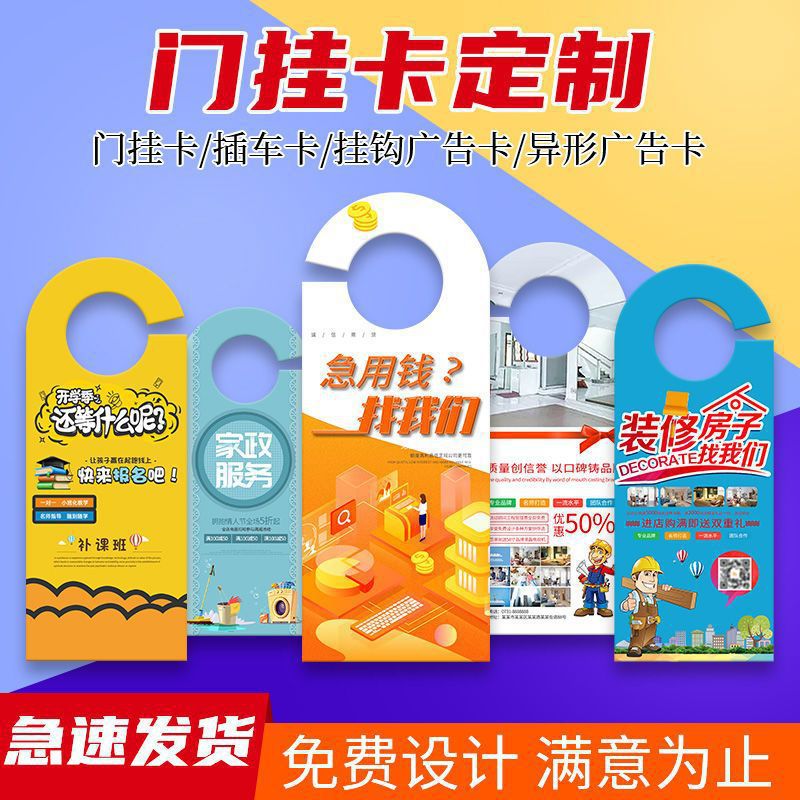 门挂卡定制印刷卡通广告宣传单异形卡片门把手单张招生引导牌
