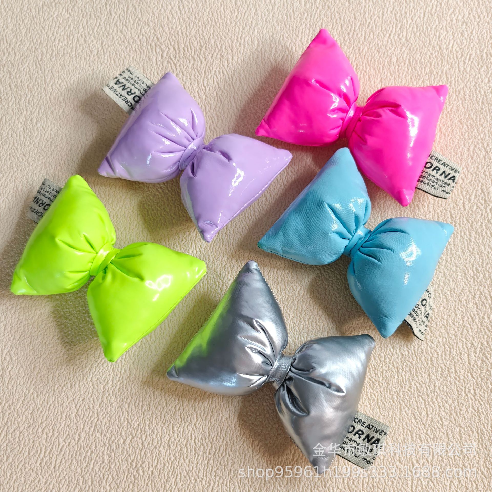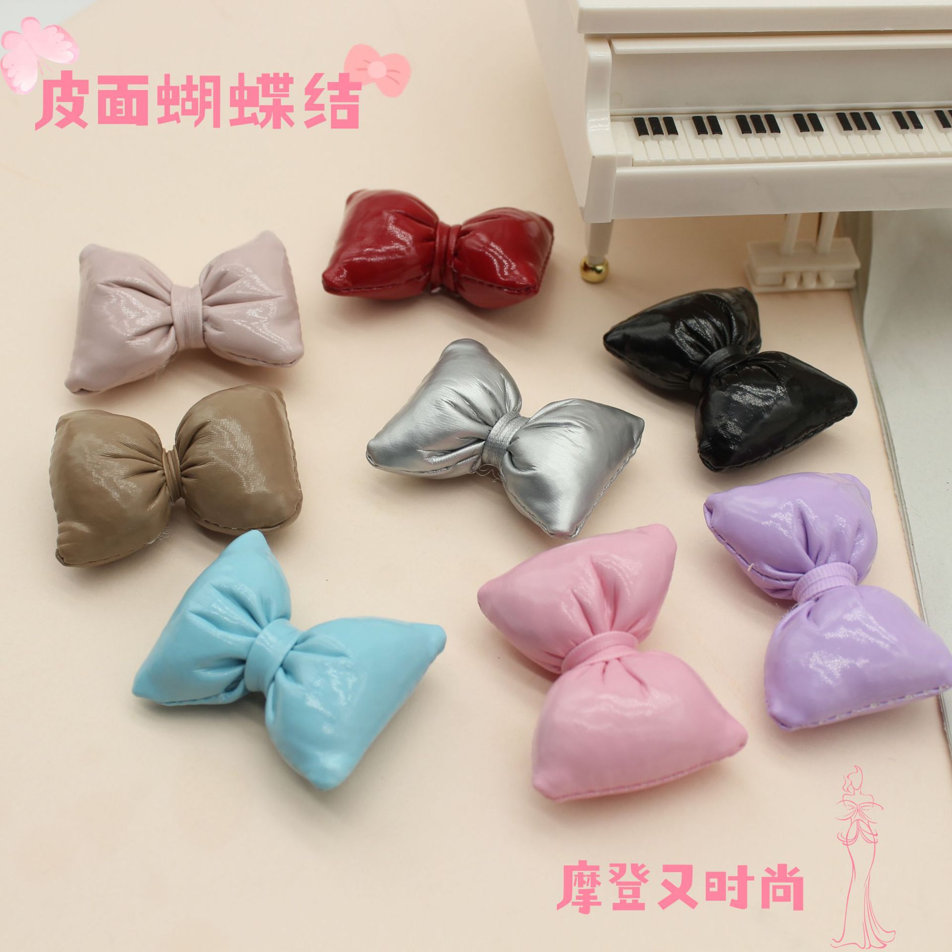 多巴胺色皮革充棉蝴蝶结配饰儿童凉鞋帽子少女DIY包包手机壳配件