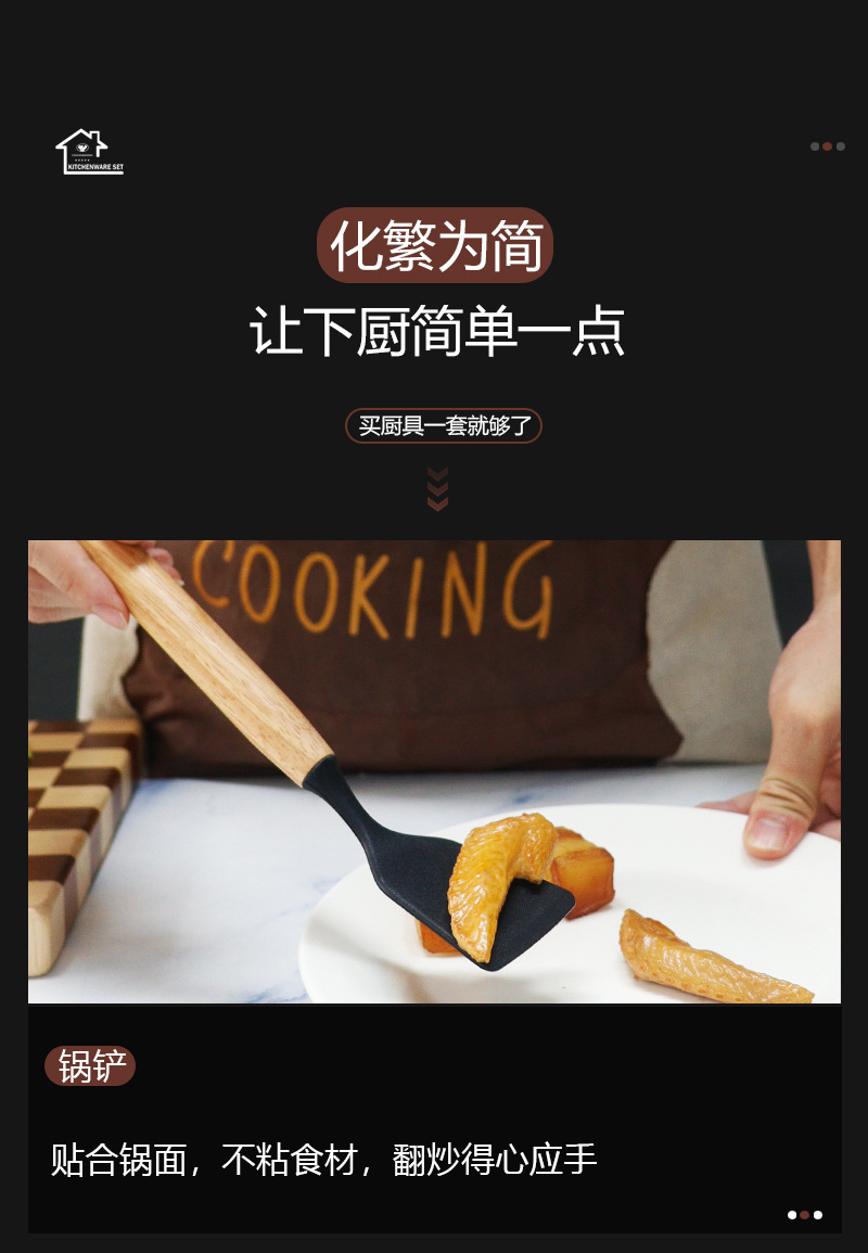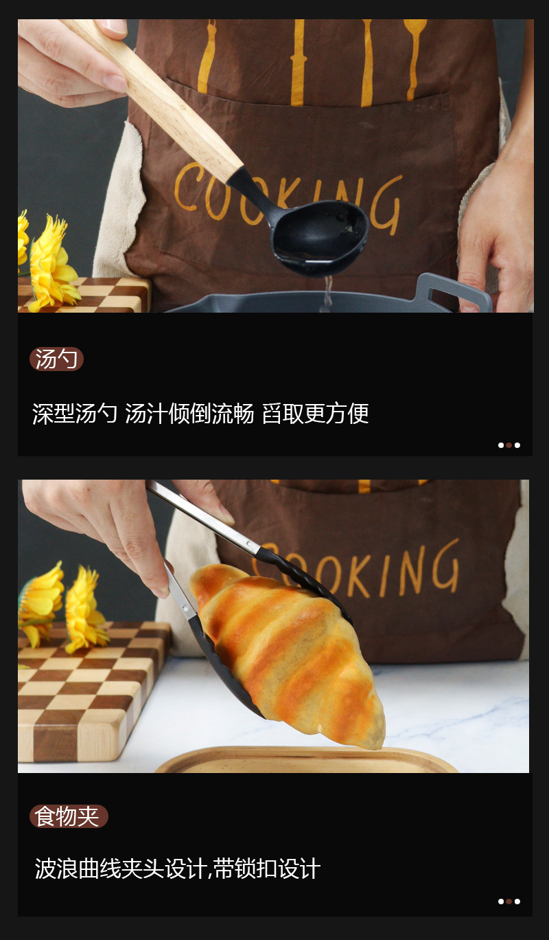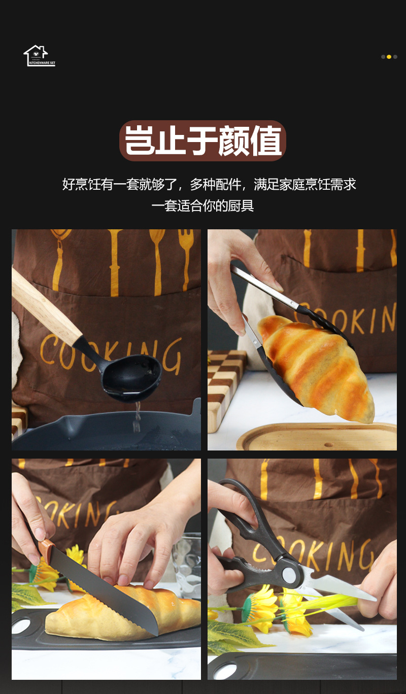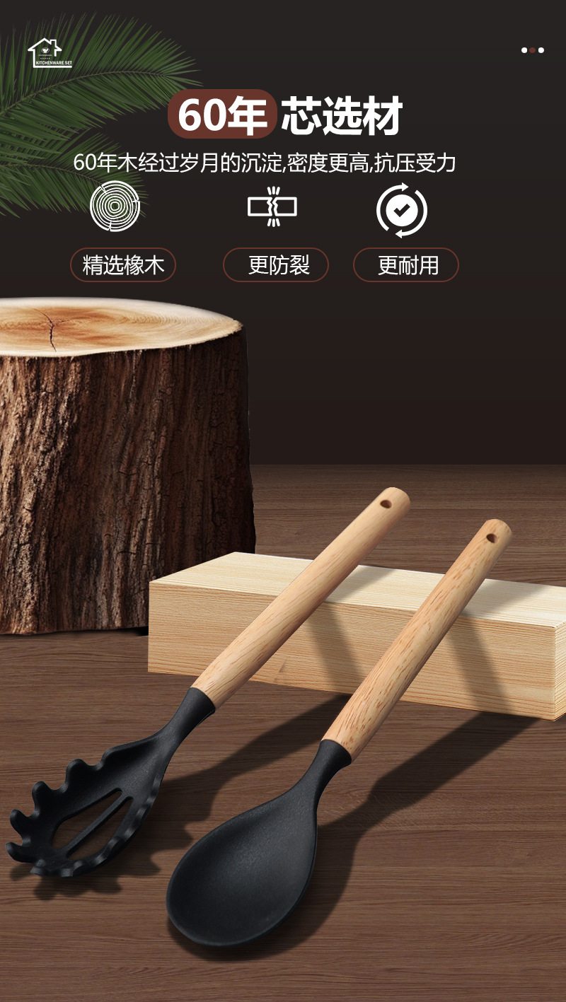 現物シリカゲル十二点セットシリカゲル調理器具セット卸売りカラー木柄食品級耐高温鍋シャベルスプーン