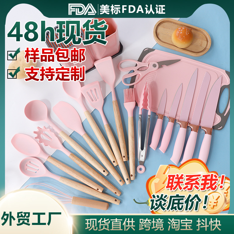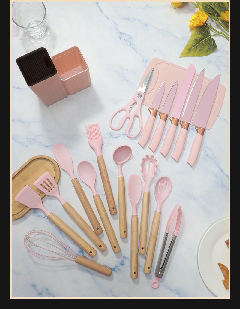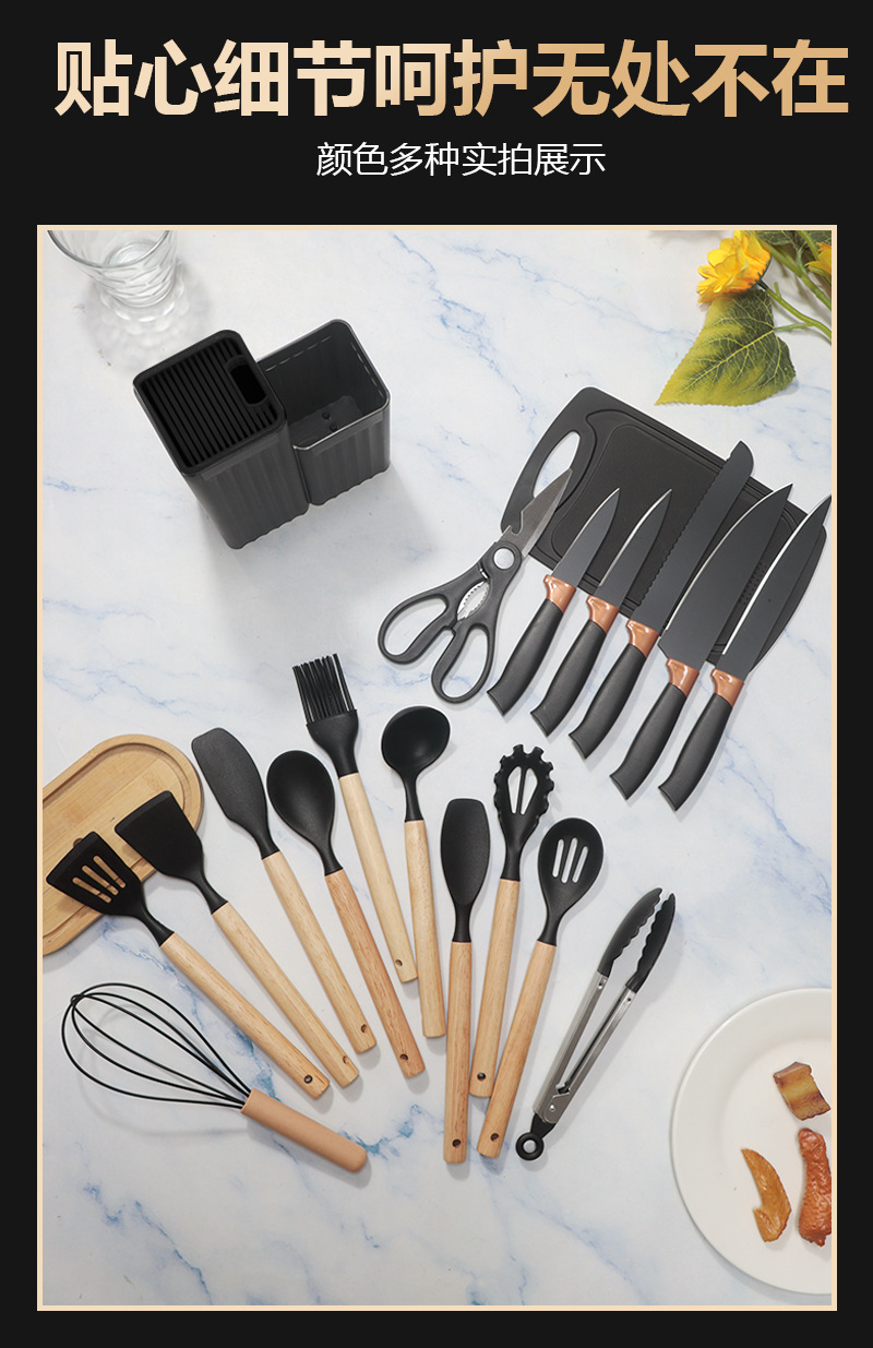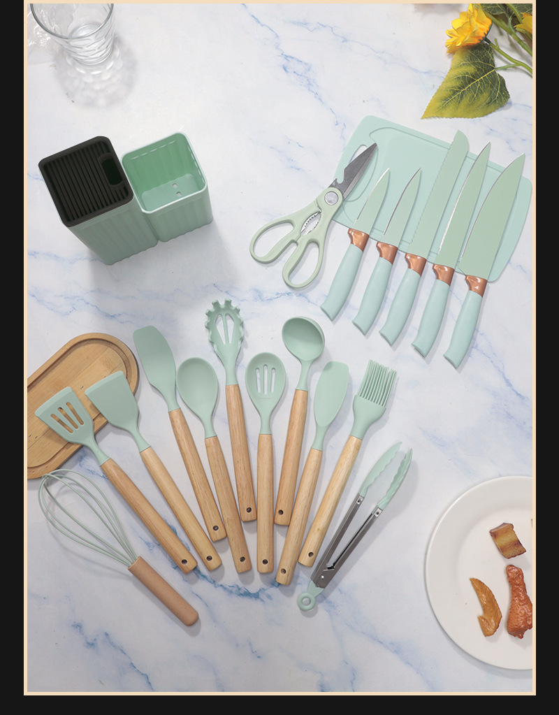 シリカゲル鍋シャベルスプーン19点セット非粘着鍋シリカゲルシャベル食品級家庭用シリカゲル調理器具刃物セット卸売り