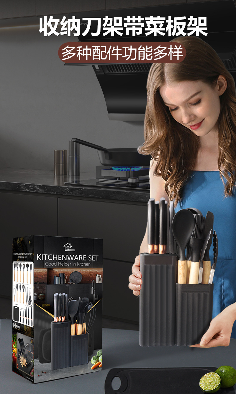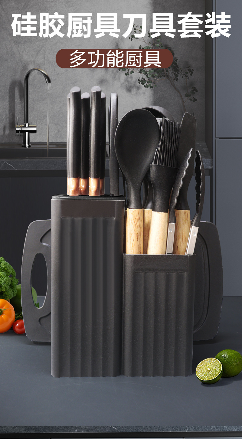 シリカゲル調理器具セット19点セット麦わらカラーセット刃物セットセット収納筒付き刃座耐高温