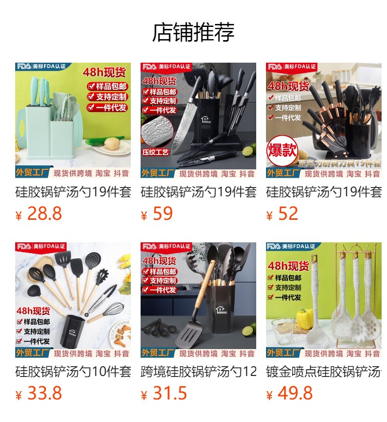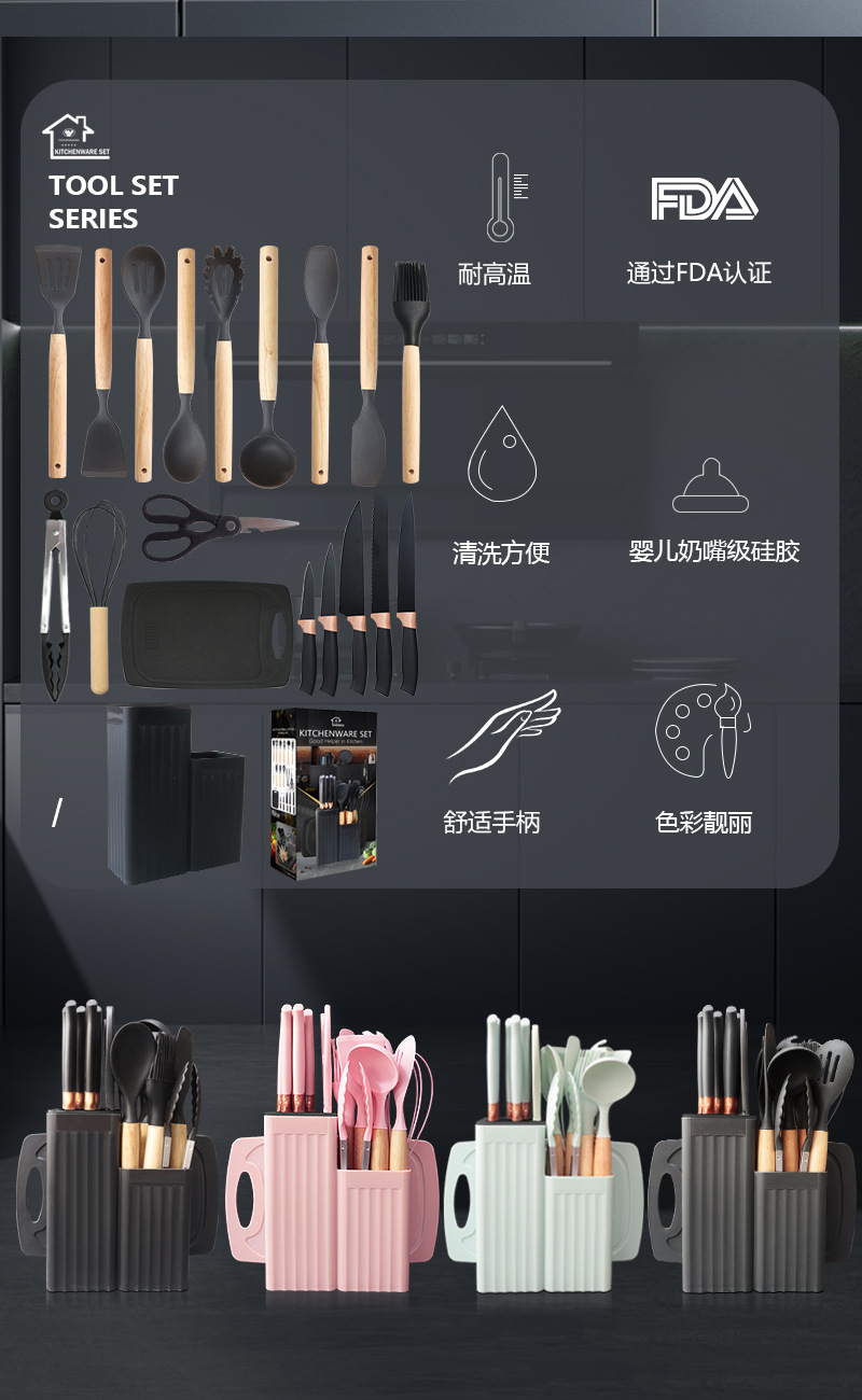 外国貿易の爆発的なシリカゲルの調理器具セット19点セットの調理シャベルの調理器具セット