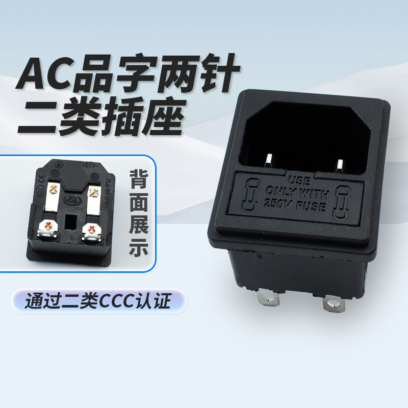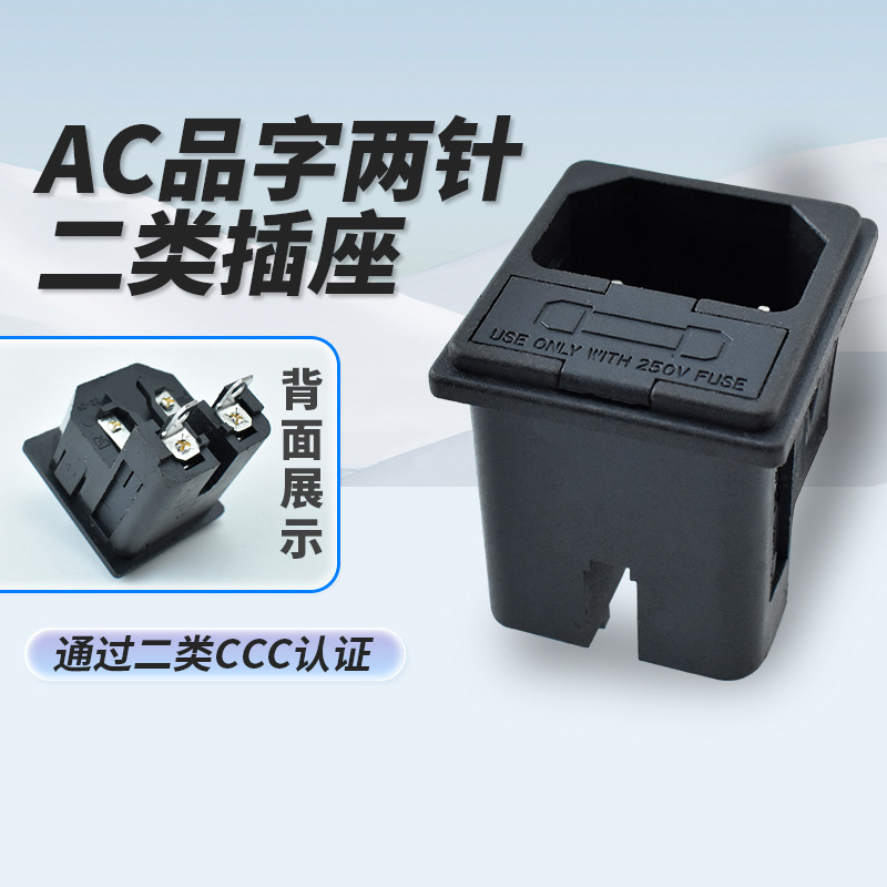 CCC認証二類医療機器ACソケットAC-02C8ソケット単保険黒品字二芯ソケット