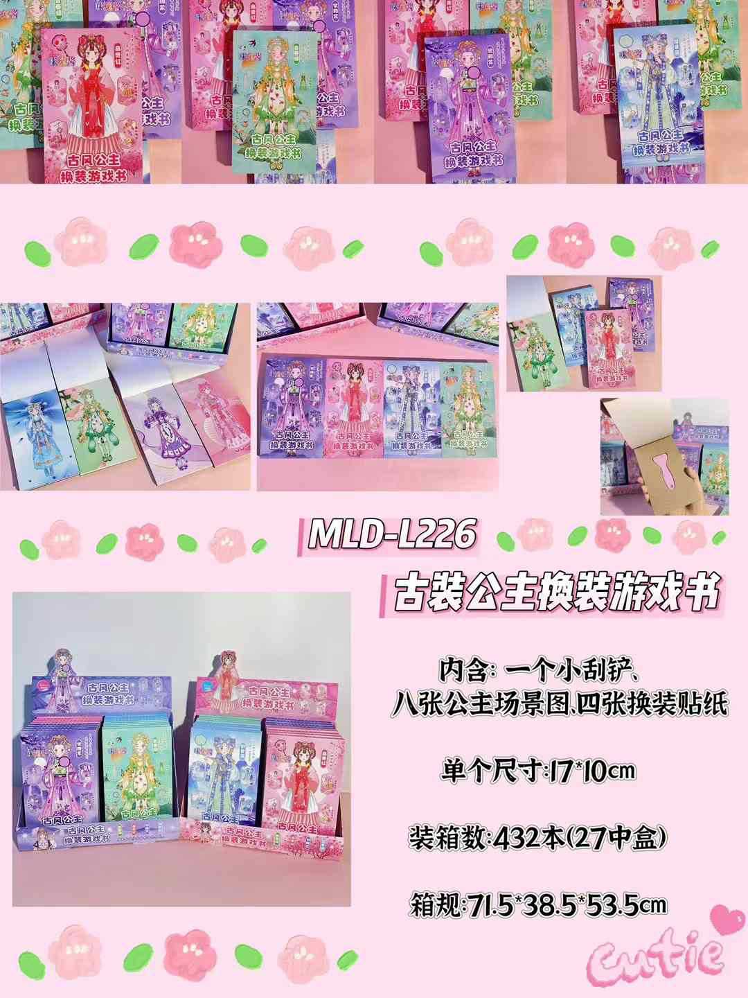 MLD-L226古装公主换装游戏本,一中盒27入,一件432本,内有8张场景图+4张换装贴纸.尺寸17*10