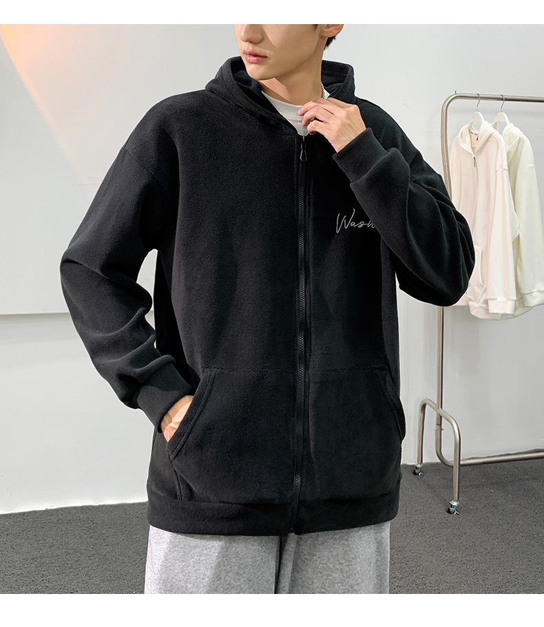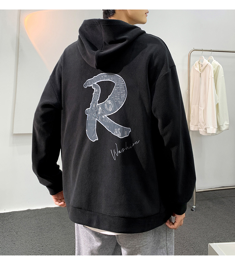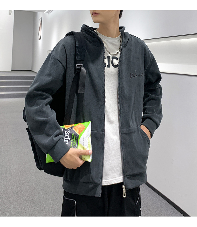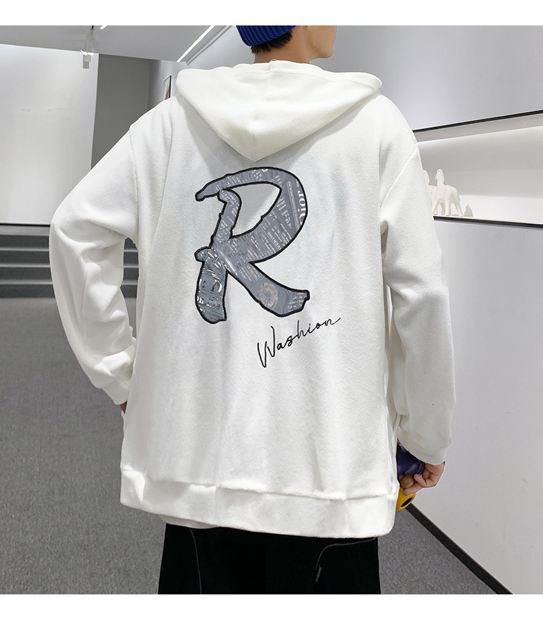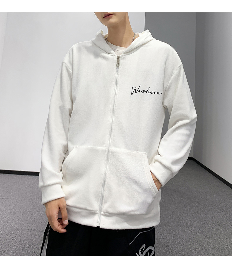 オーバルウールフード付きベルベット厚手長袖カーディガン純色アルファベット刺繍入りコート上着