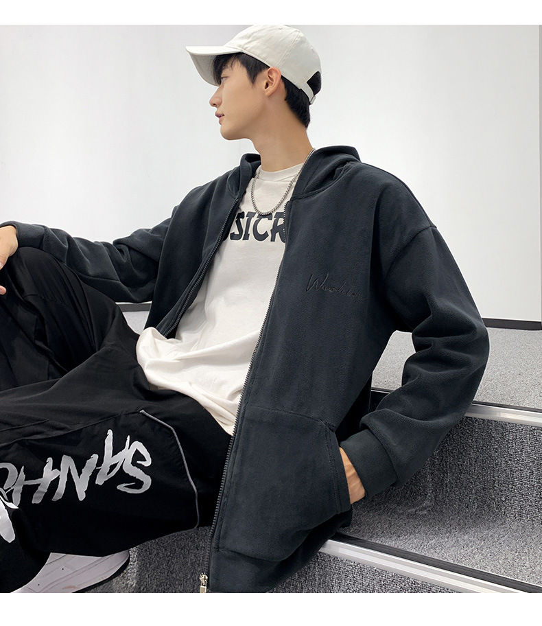 L-8XL秋冬新作男性レジャースポーツフード付きカーディガンセット