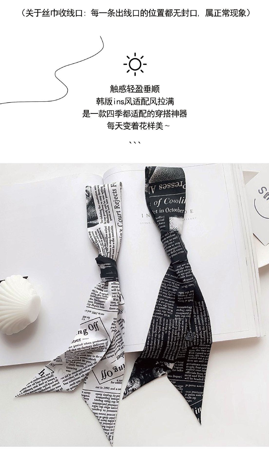 韓国版の英語のプリントのシルクタオルは簡単に合わせて髪を結びます。