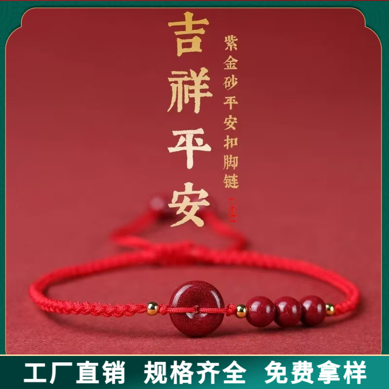 朱砂红绳手链紫金砂平安扣手串红绳脚链男女编制手绳男女手绳批发
