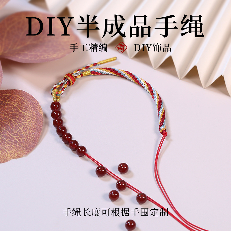 手工编织半珠半绳手链新国潮风半成品手绳原创手串diy穿珠串手饰