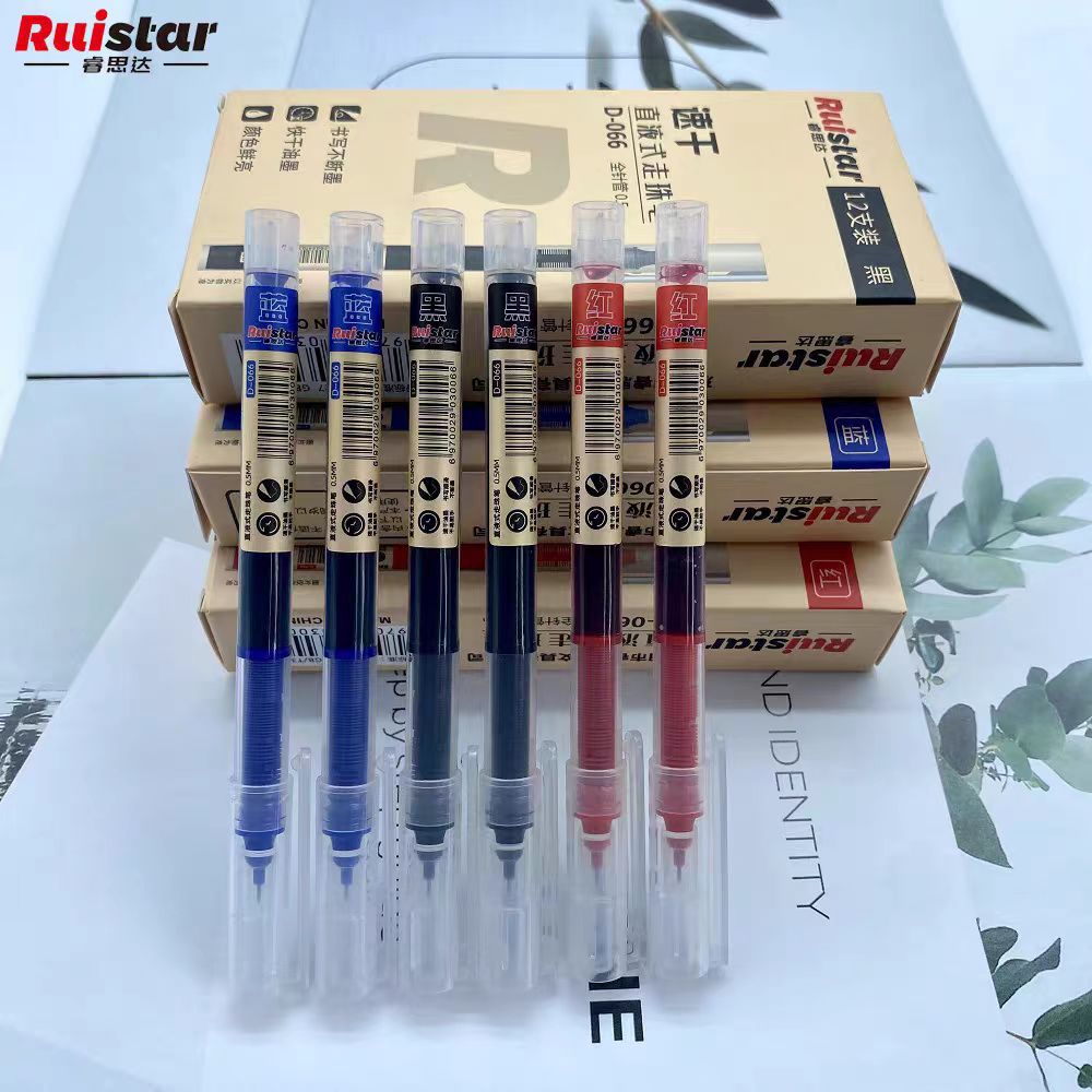睿思達カラー12色ボールペン大容量直液式針管ペン事務学生速乾中性ペン卸売り