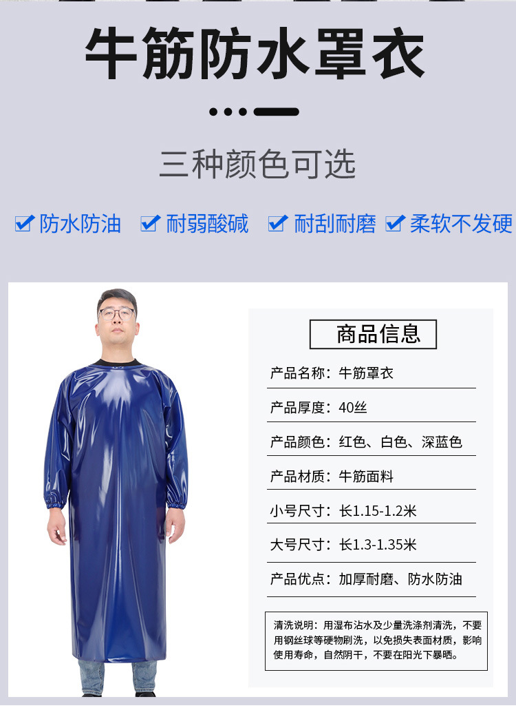 牛筋が厚く防水防油酸アルカリカバー耐摩耗エプロン化学工場屠殺場石材長袖反着