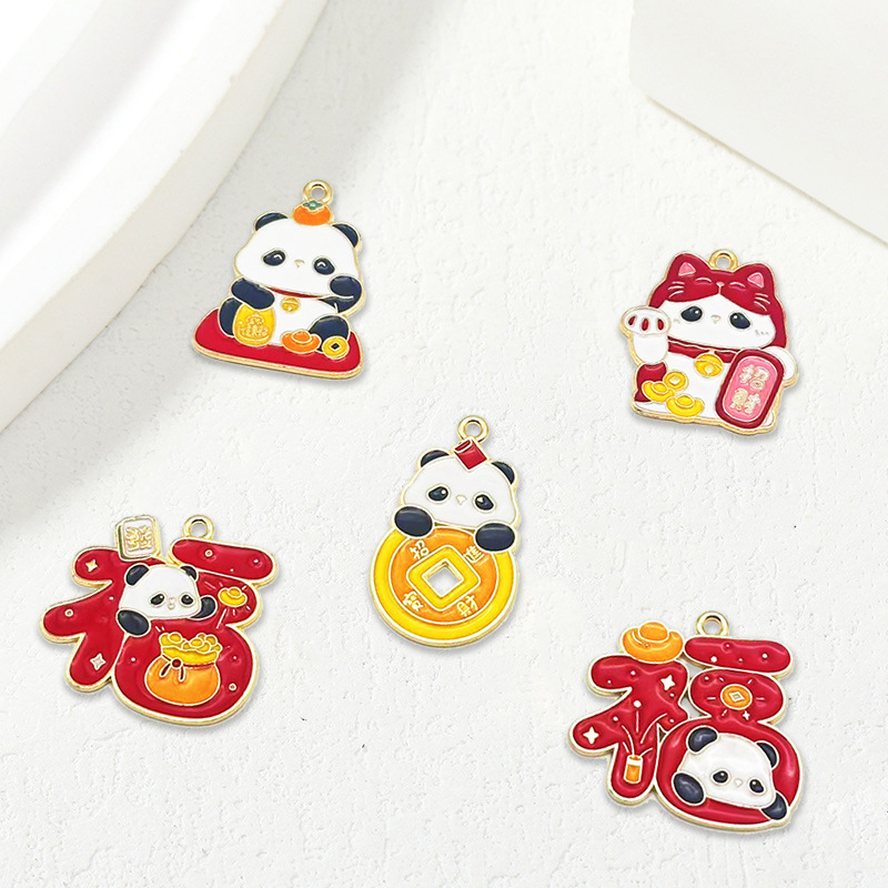 漫画国潮パンダ福パンダ金属部品招き猫学生プレゼントネックレスアクセサリーキーホルダーペンダント