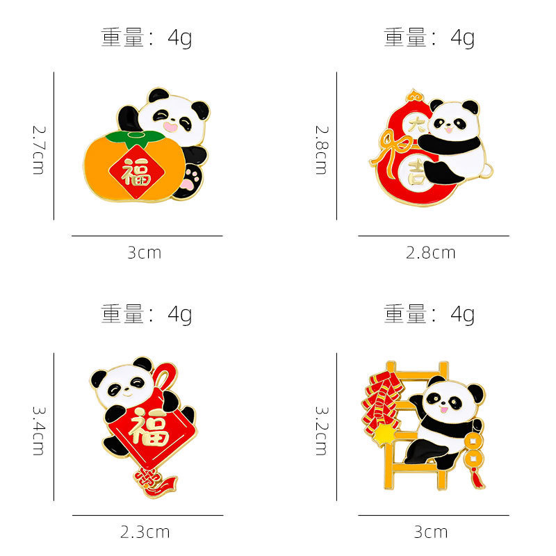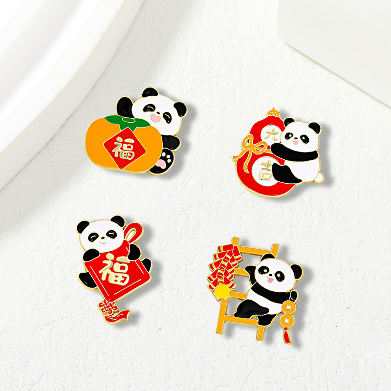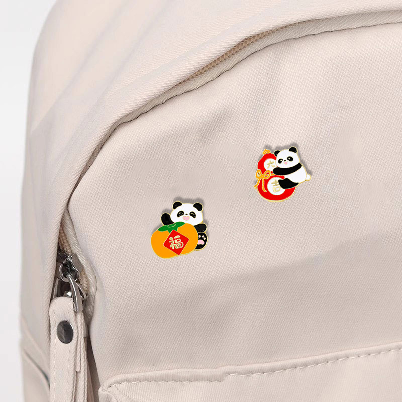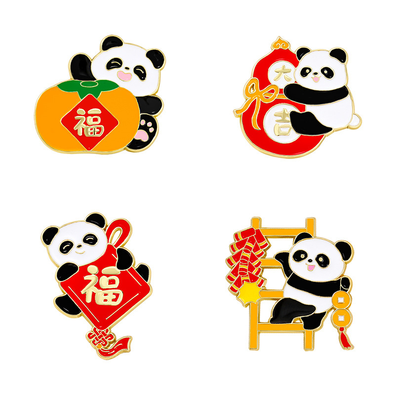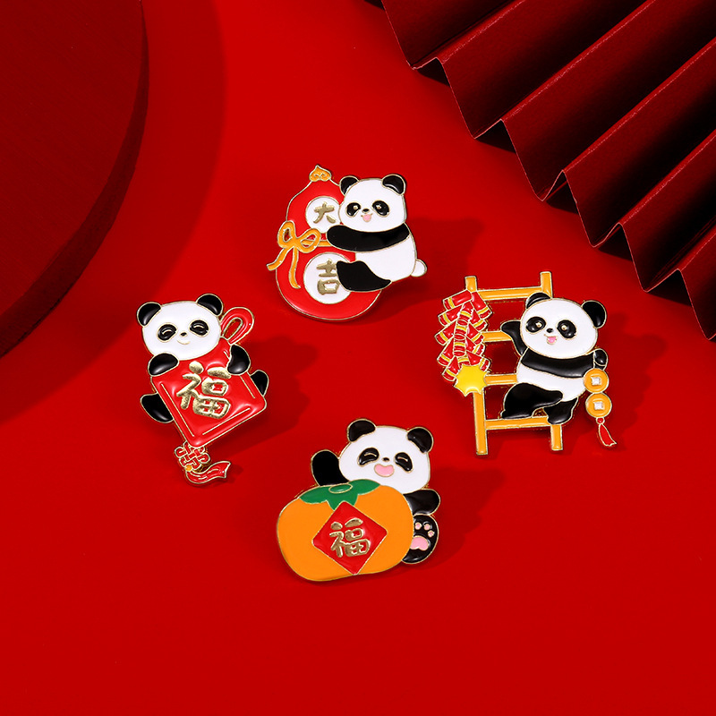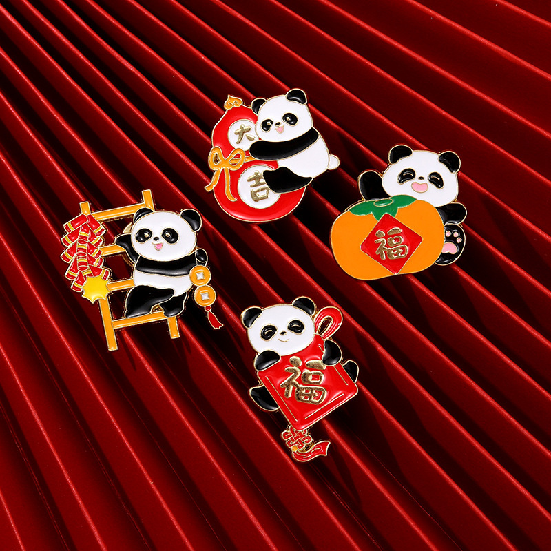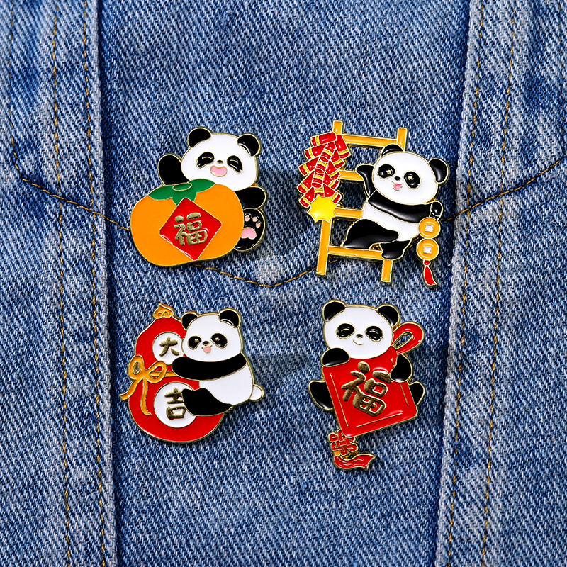 国潮中国風拝年パンダバッジ福から大吉までかわいいパンダ衣装ブローチ新年バッグ装飾品