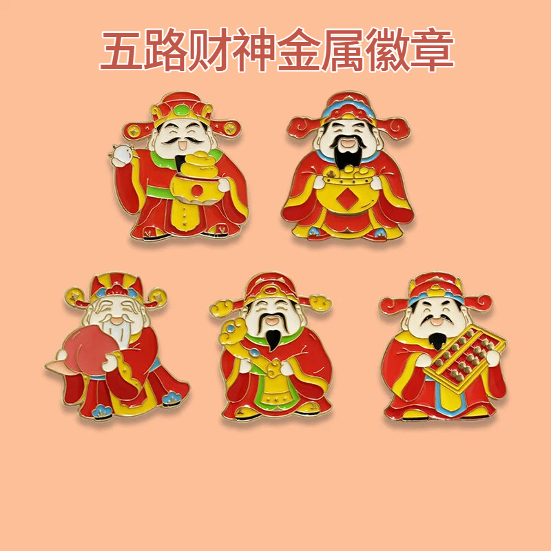 五路财神金属徽章pin喜庆财神胸针百搭包包配饰新年小礼品送朋友