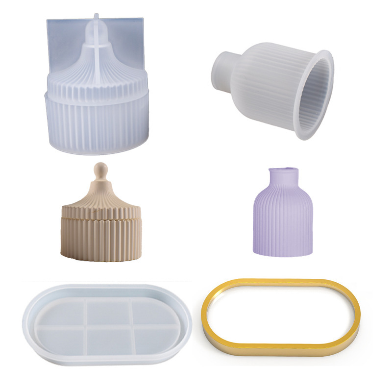 ラウンドストライプ収納セットシリコン金型diy石膏ストライプ生け花収納楕円パレットドリップ金型