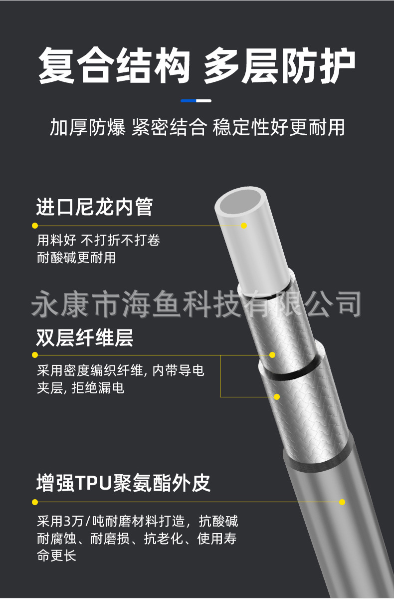 国境を越えた人気高圧無気塗装機高圧管ナイロンホース防爆鋼線塗装管塗装機部品