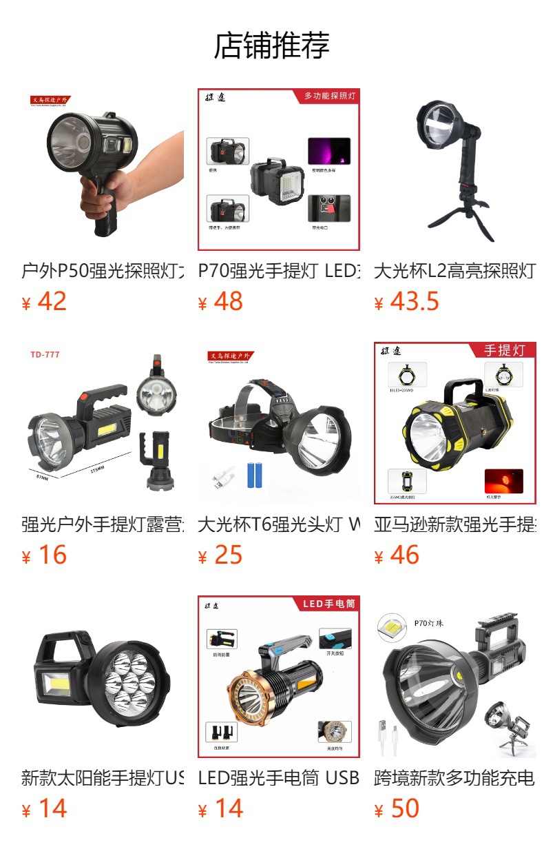 クロスボーダー手持ち懐中電灯屋外led強光サーチライト太陽エネルギー充電宝スタンド手提げライト赤黄緑