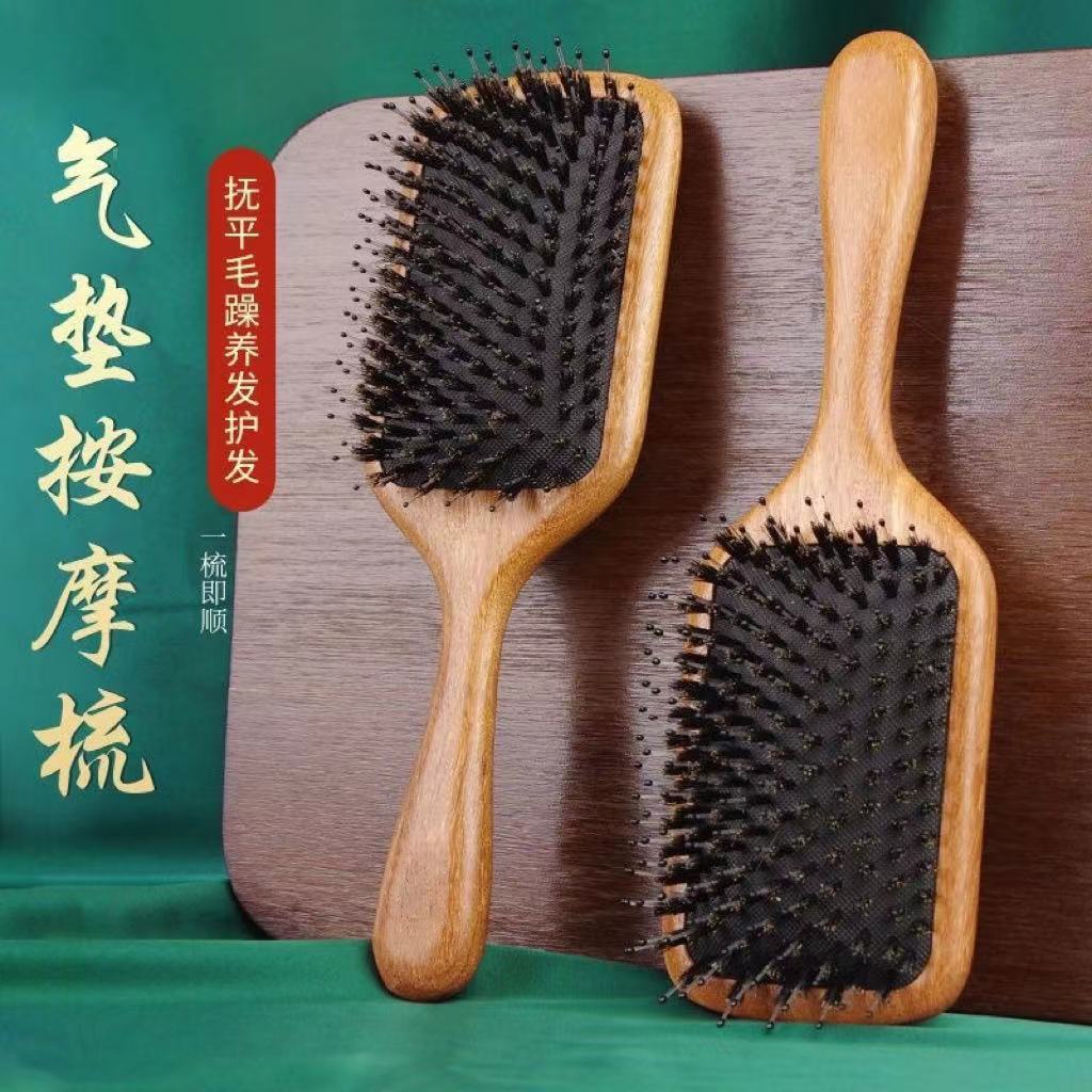 豚毛エアクッションコーム、エアバッグコーム、頭皮マッサージ、木製コーム、白檀、女性用、ロングヘア、頭皮ケア、家庭用