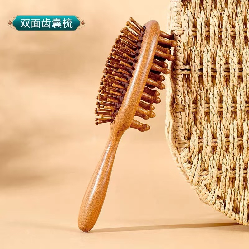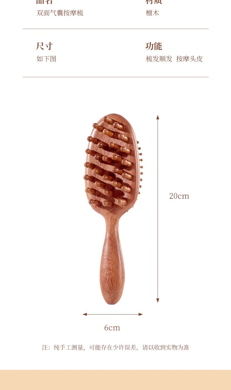 楕円形のエアクッション櫛、白檀の経絡櫛、マッサージ櫛、頭部用エアバッグ白檀櫛、髪を傷めない両面マッサージ